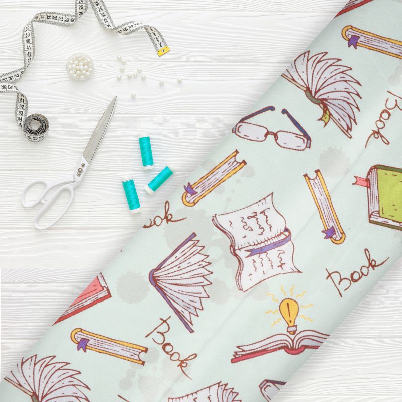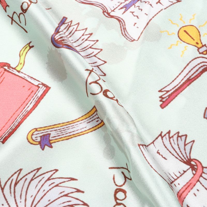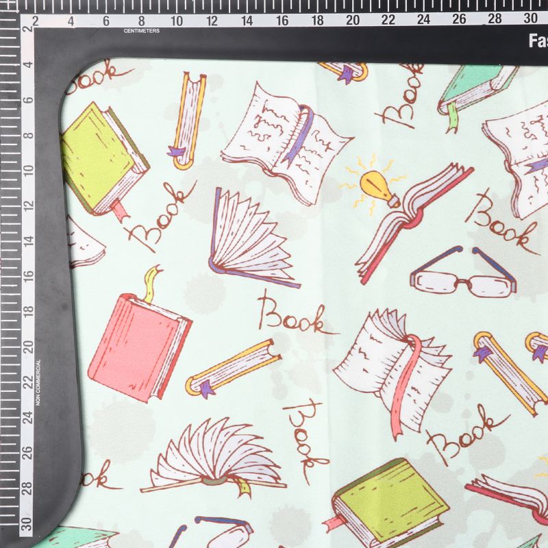 Mint Green And White Object Pattern Digital Print Japan Satin Fabric