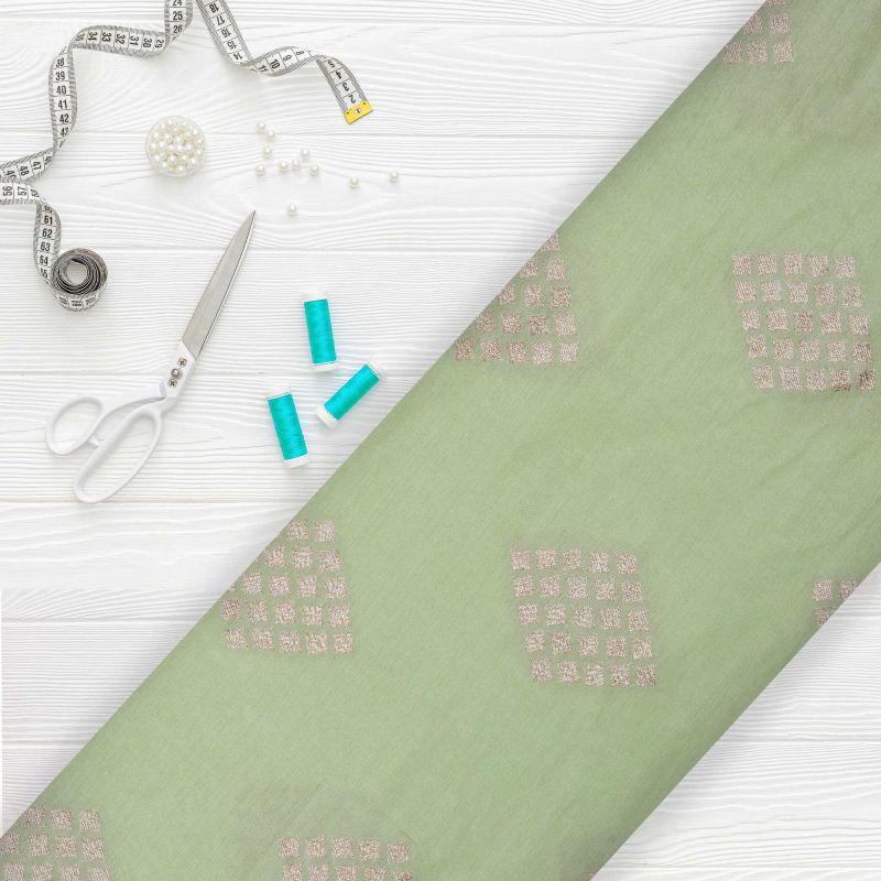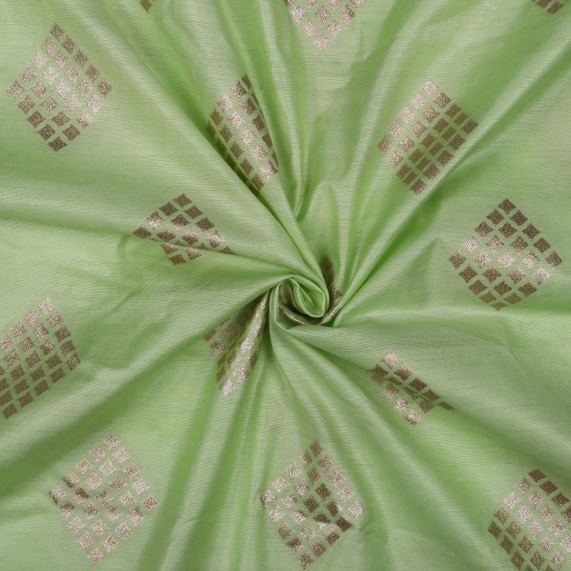 Mint Green Diamond Pattern Dyed Jacquard Chanderi Fabric