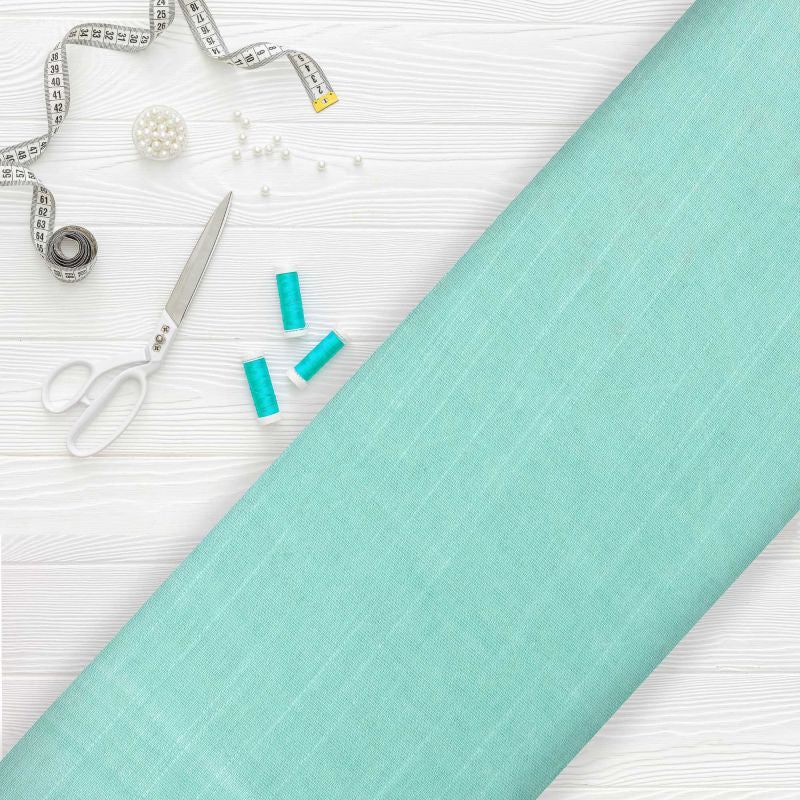 Mint Green Plain Dyed Chanderi Slub Fabric
