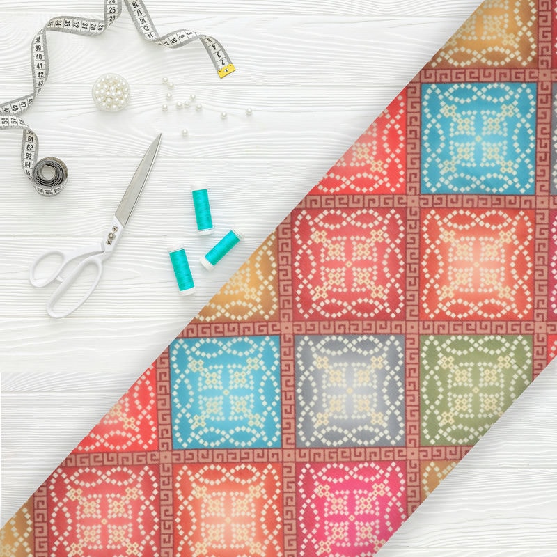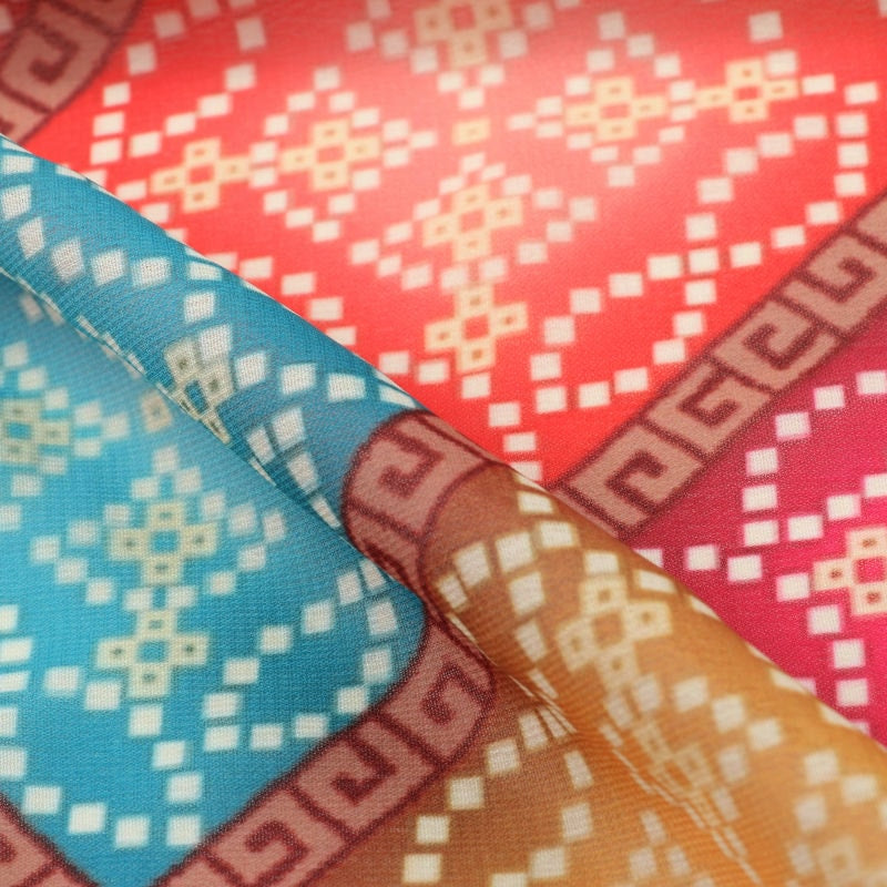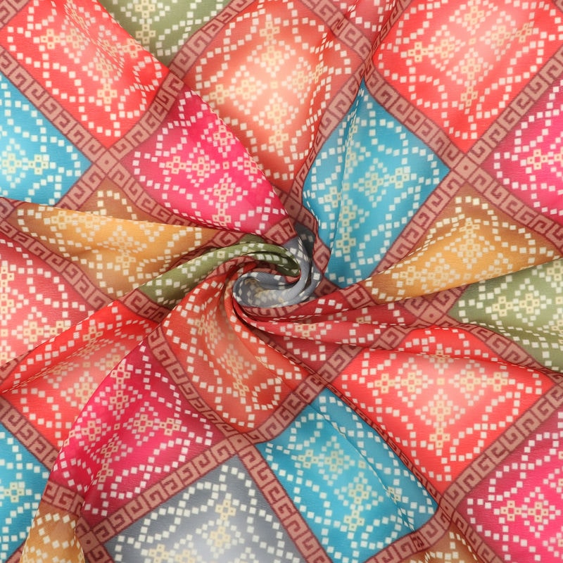 Multi Color Bandhani Pattern Digital Print Georgette Fabric