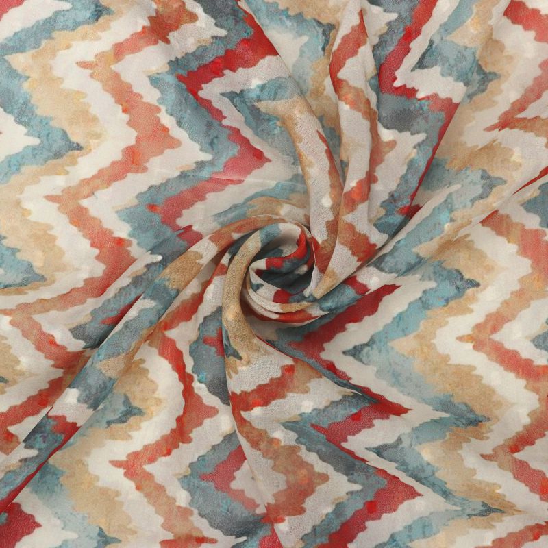 Multi Color Chevron Pattern Digital Print Georgette Dobby Fabric