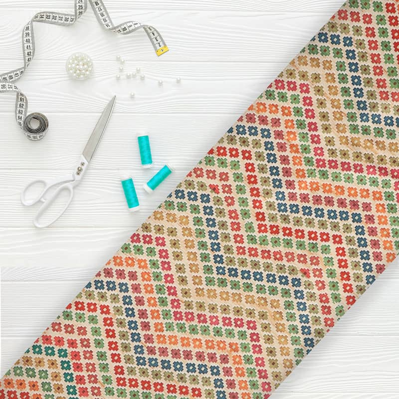 Multi Color Chevron Pattern Digital Print Japan Satin Fabric