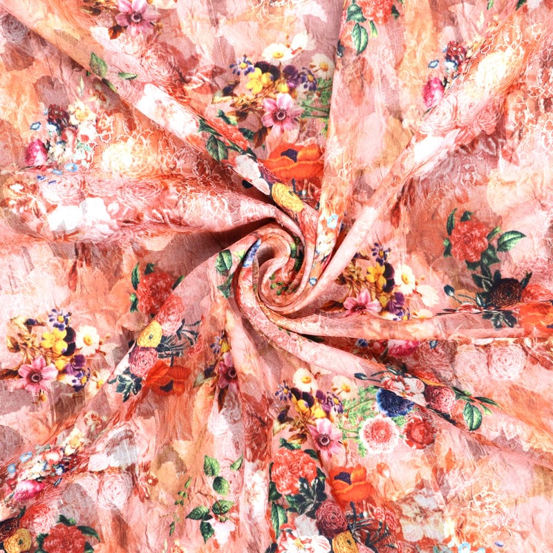 Multi Color Floral Pattern Digital Print Jacquard Georgette Fabric