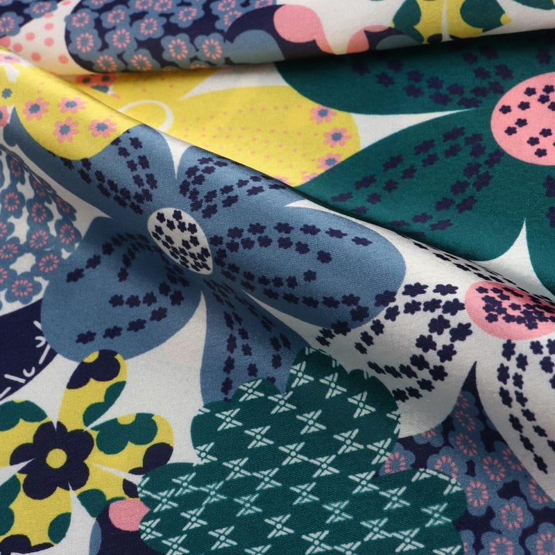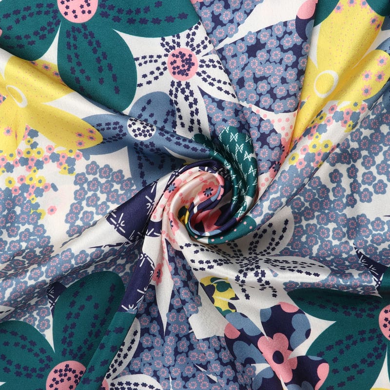 Multi Color Floral Pattern Digital Print Japan Satin Fabric