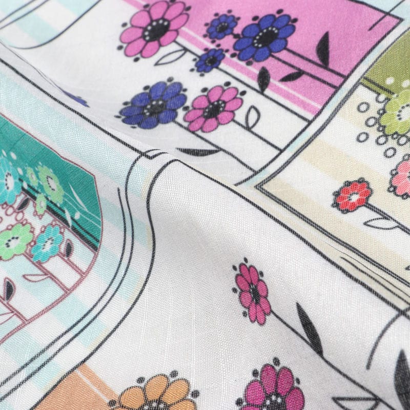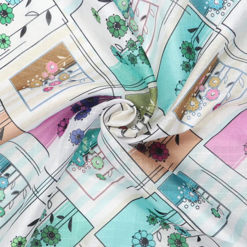 Multi Color Floral Pattern Digital Print Tangy Silk Checks Fabric