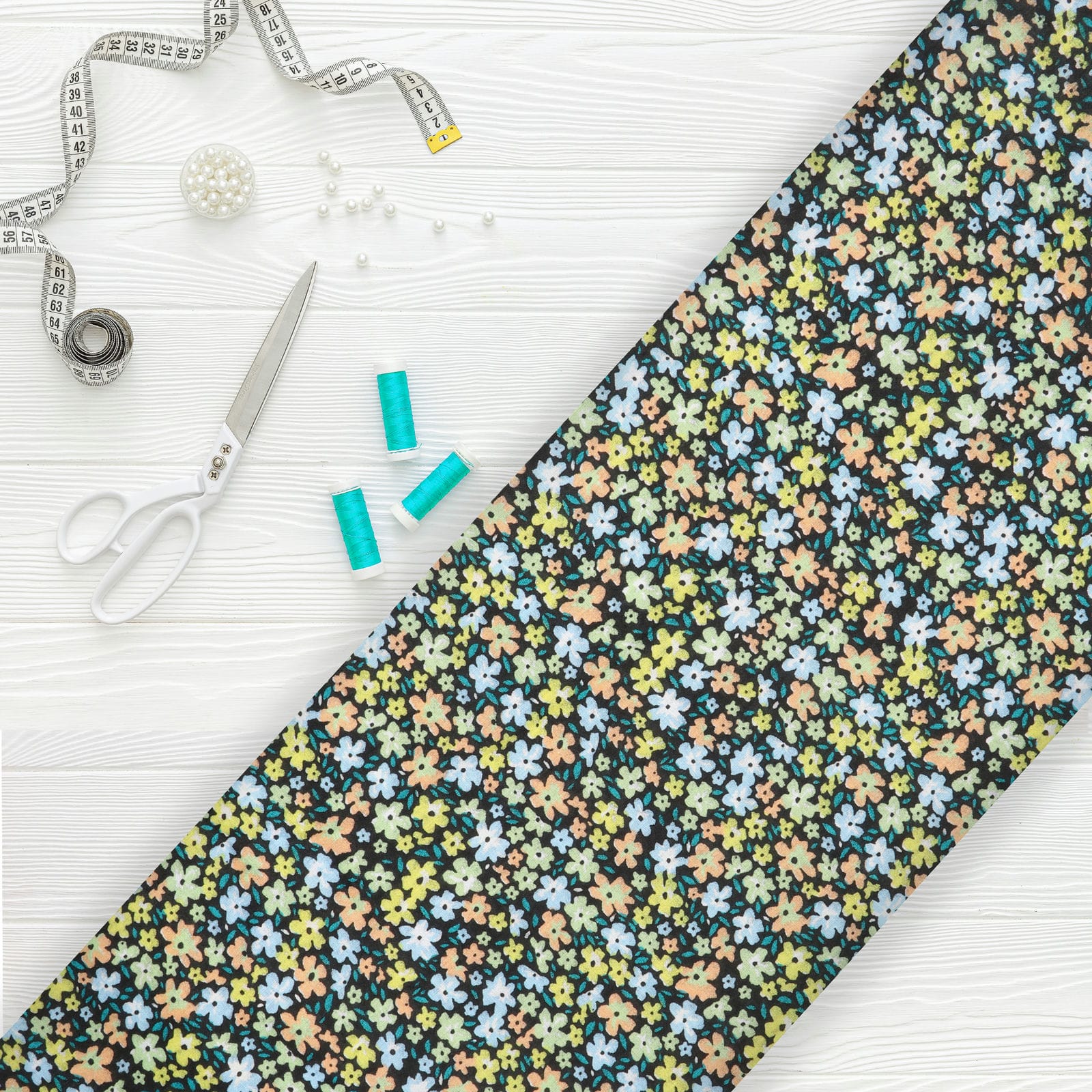 Multi Color Floral Pattern Screen Print Cotton Fabric