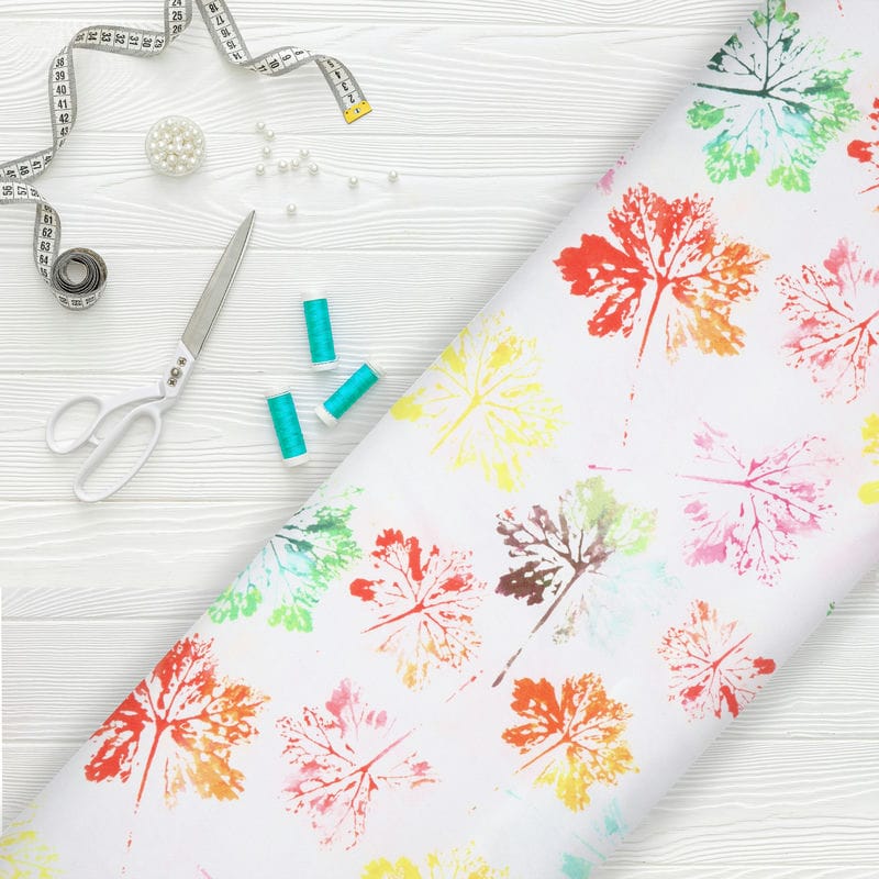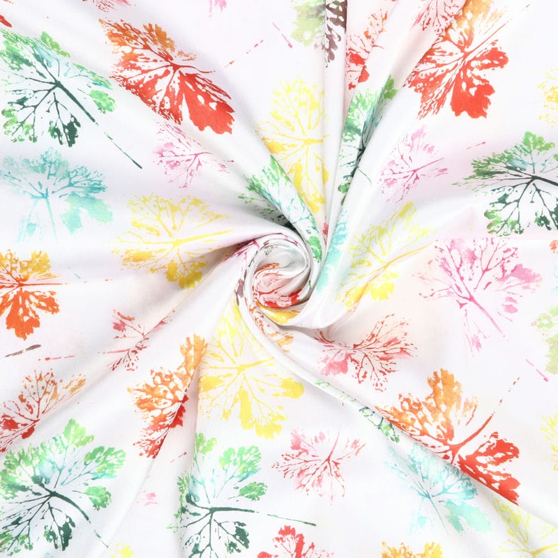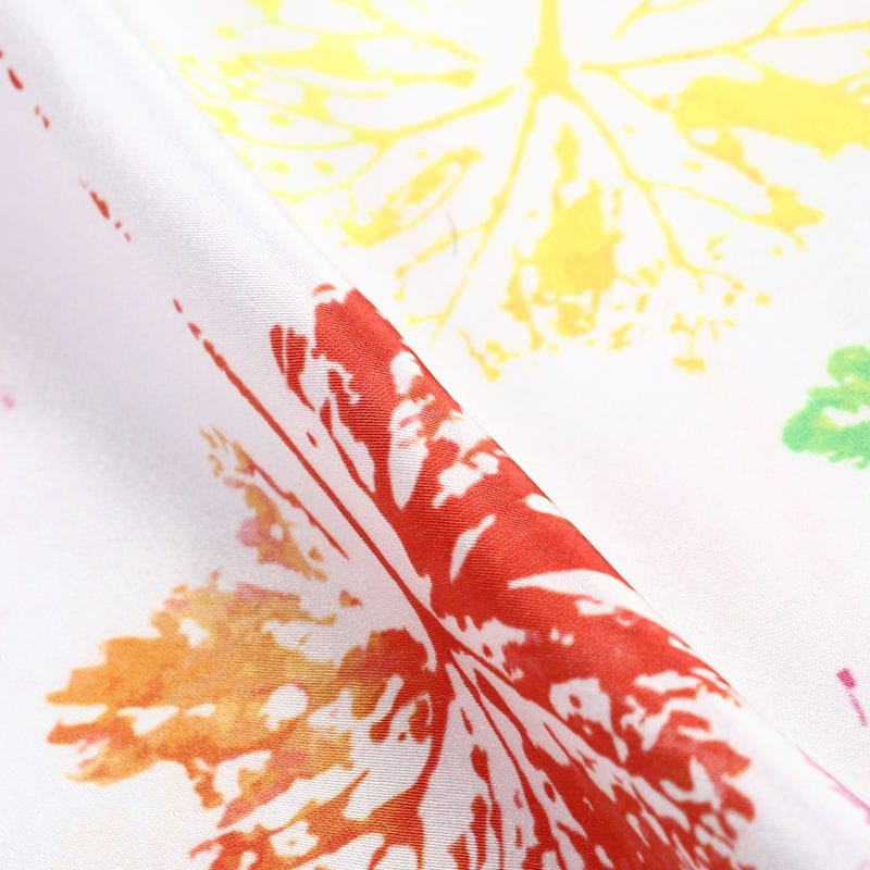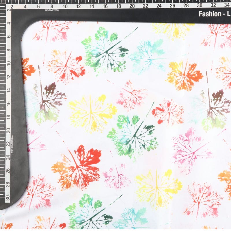 Multi Color Leaf Pattern Digital Print Japan Satin Fabric