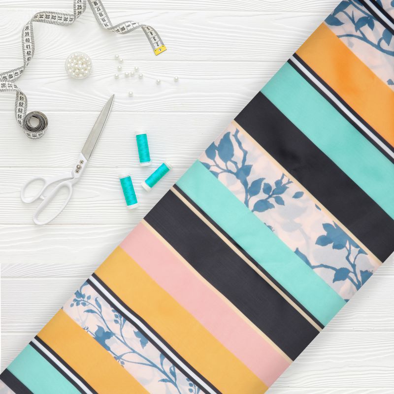 Multi Color Stripes Pattern Digital Print Liquid Organza Fabric
