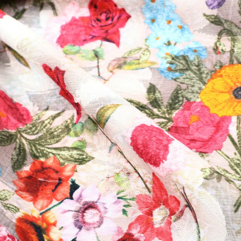 Multi Pink Floral Pattern Digital Print Jacquard Georgette Fabric