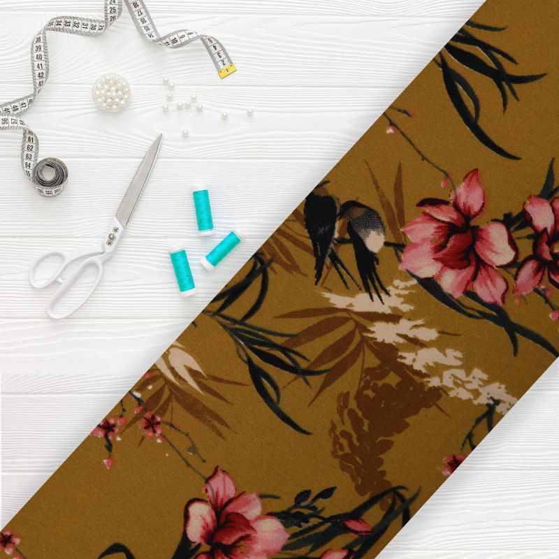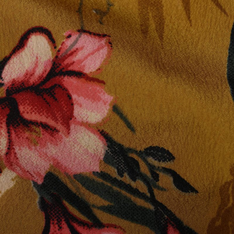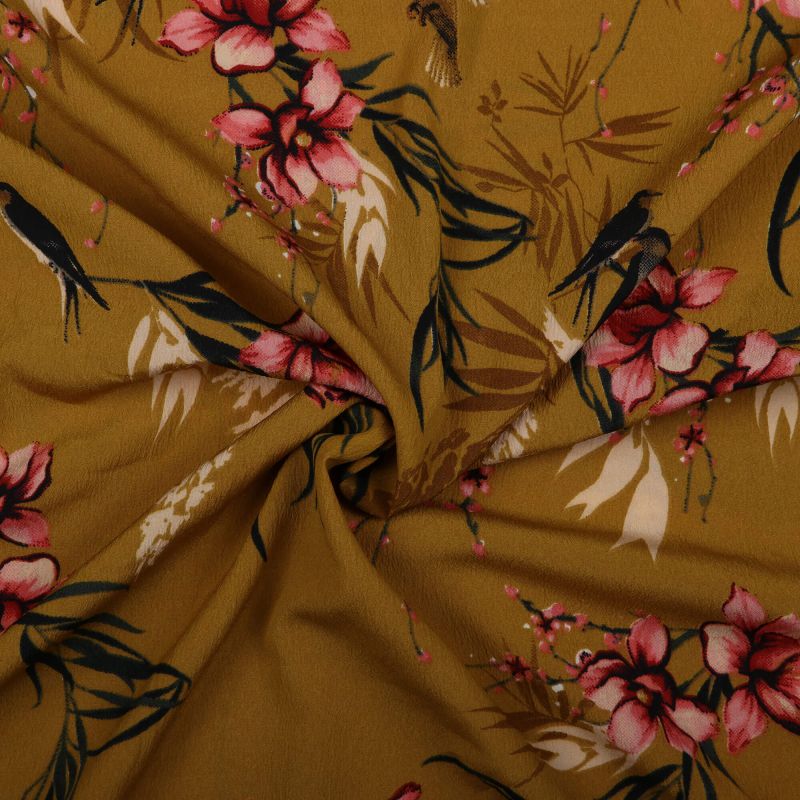 Mustard Yellow And Pink Floral Pattern Rivera Crepe Fabric