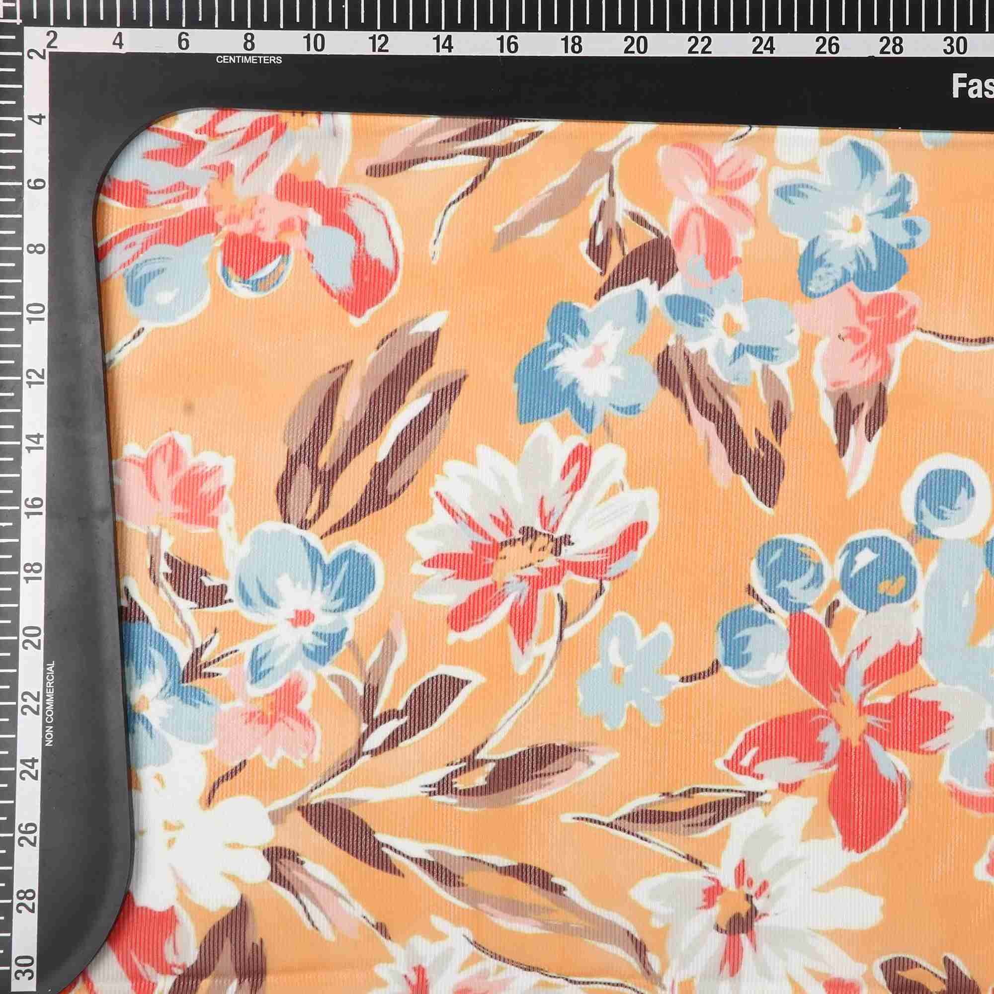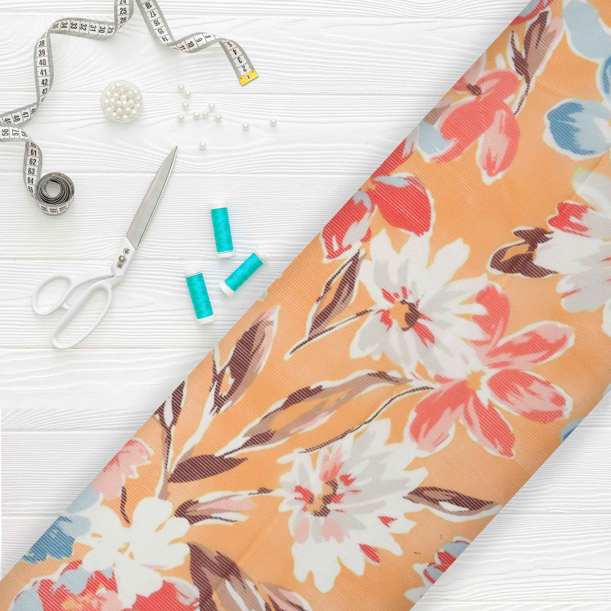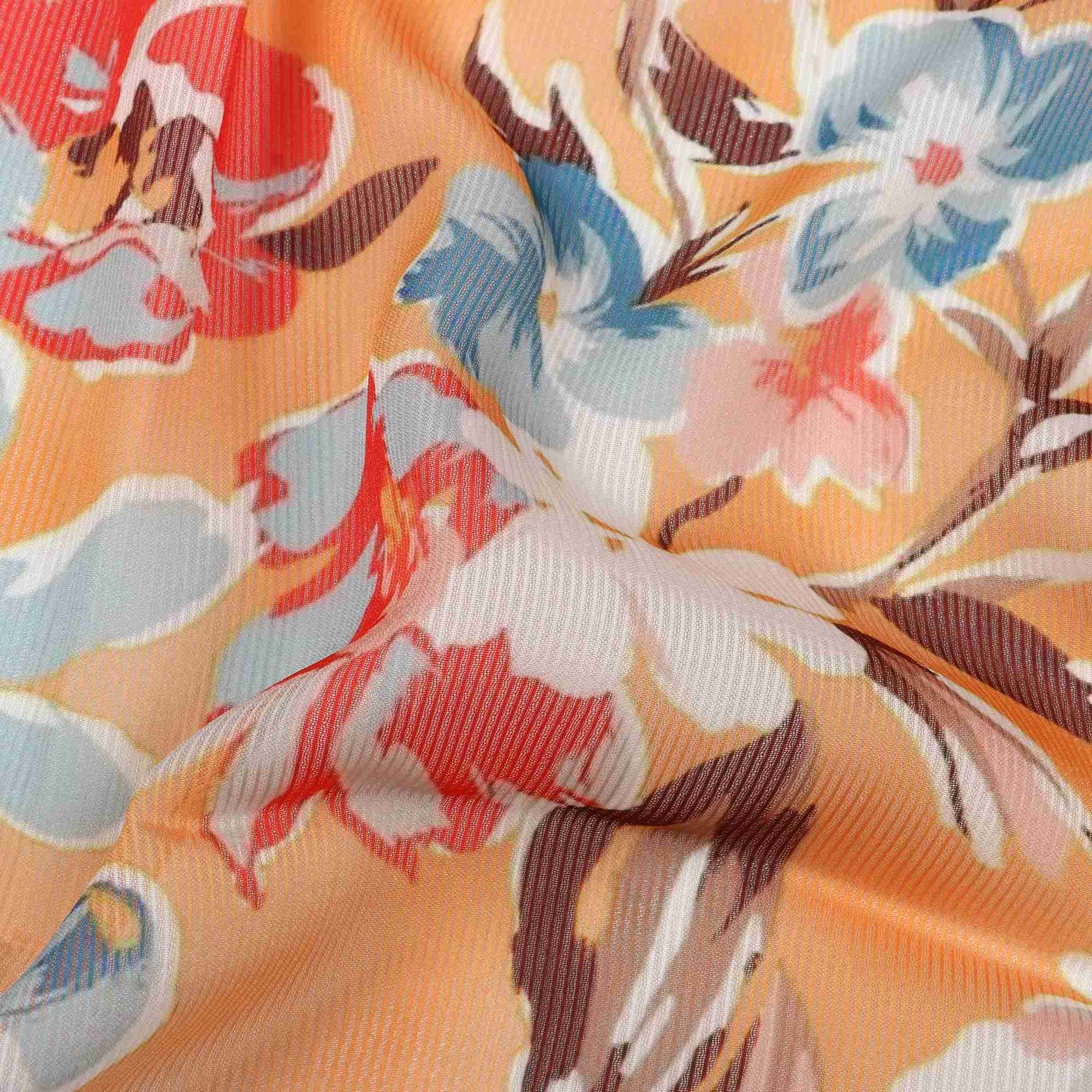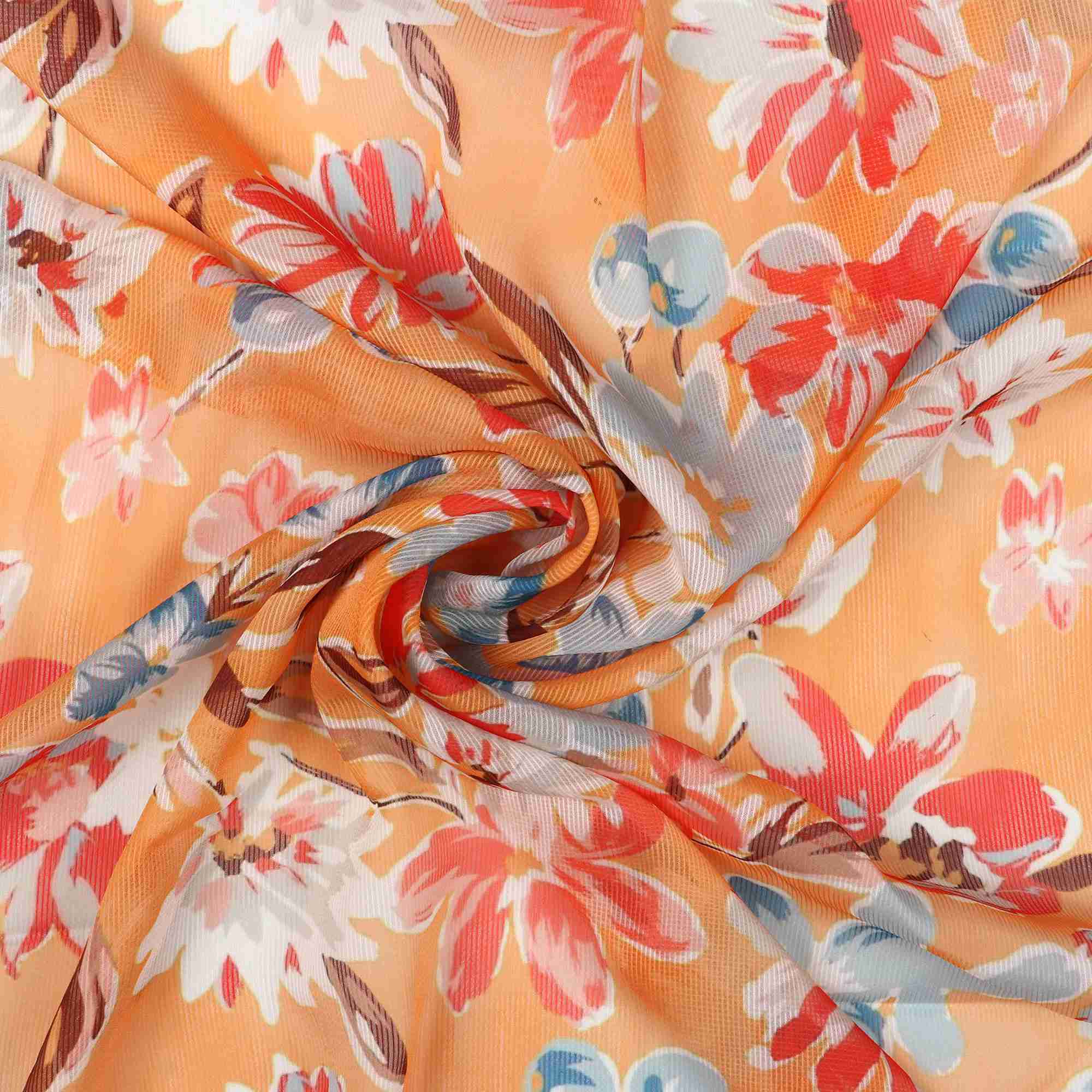 Mustard Yellow And Red Floral Pattern Digital Print Chiffon Fabric