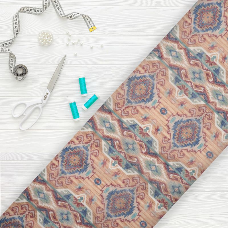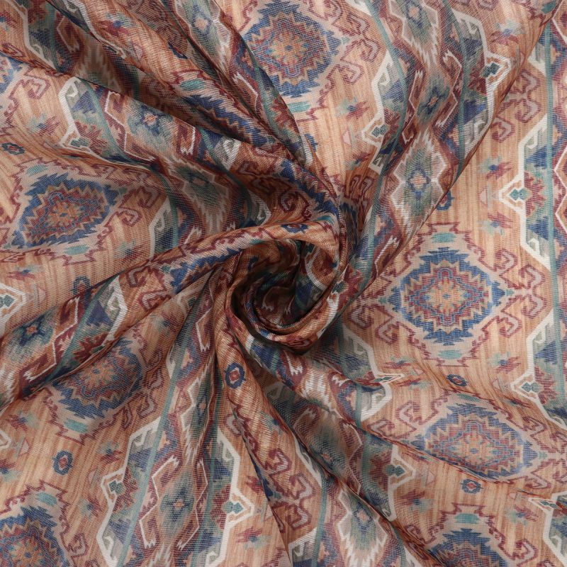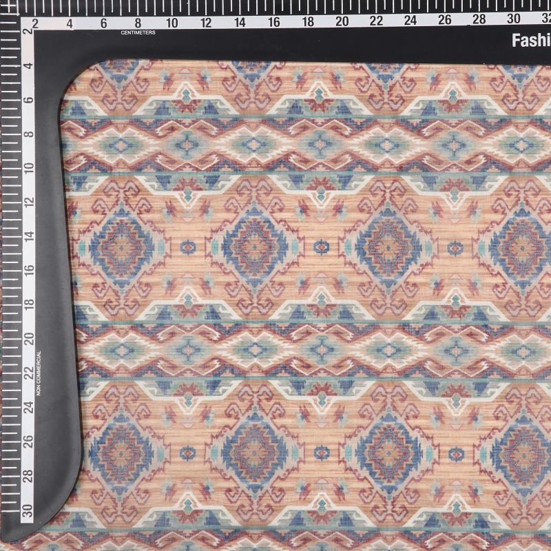 Navajo Yellow And Navy Blue Traditional Pattern Digital Print Chanderi Fabric