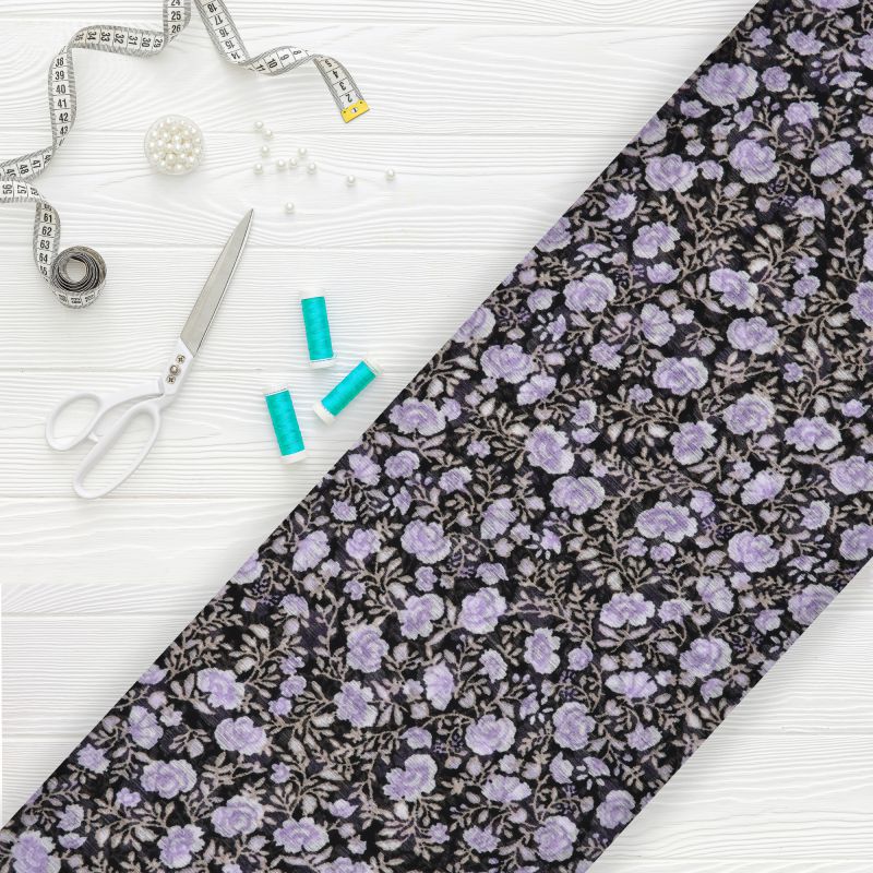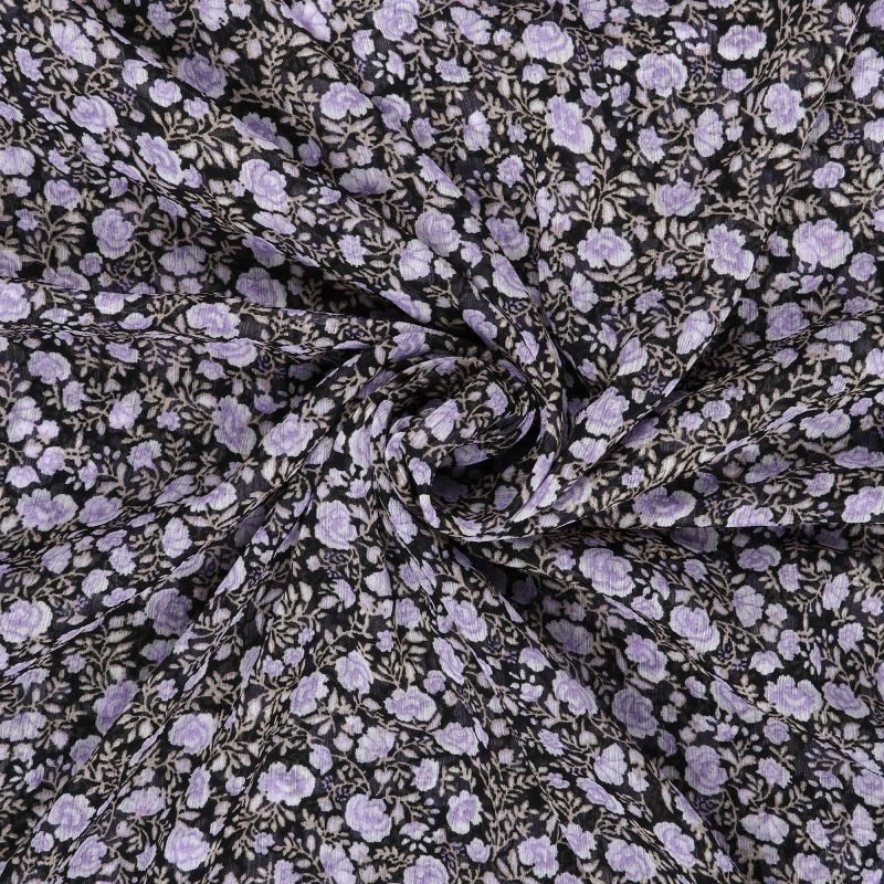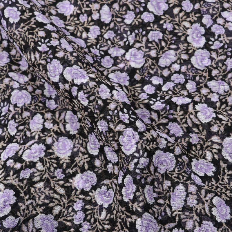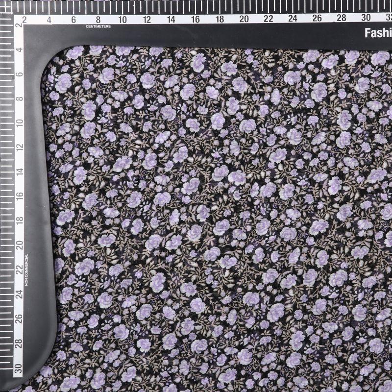 Navy Blue And Lavender Floral Pattern Screen Print Chiffon Fabric