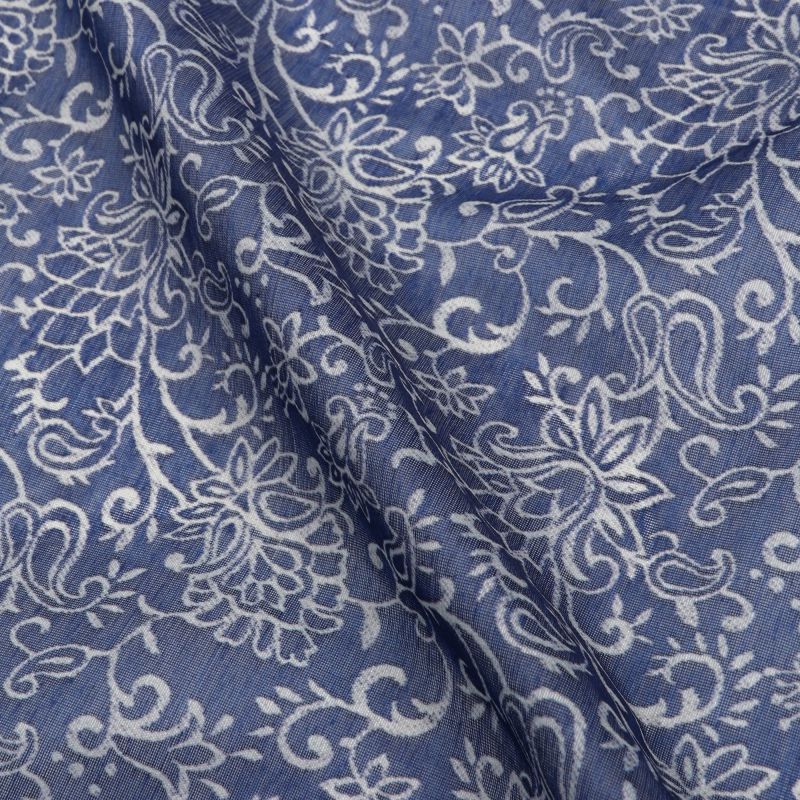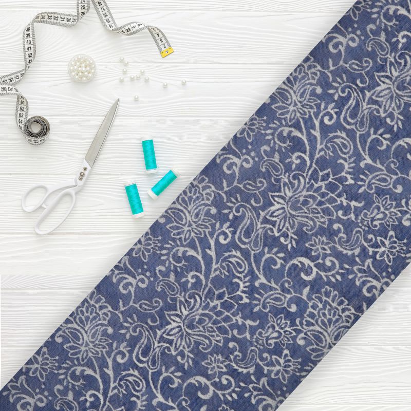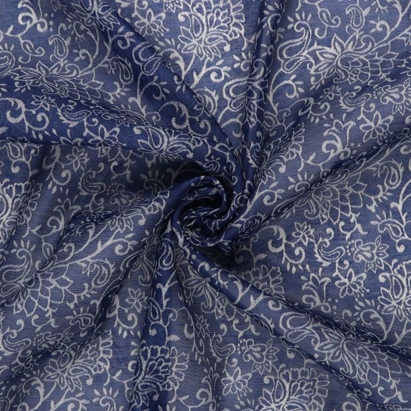 Navy Blue And White Floral Pattern Digital Print Chanderi Fabric