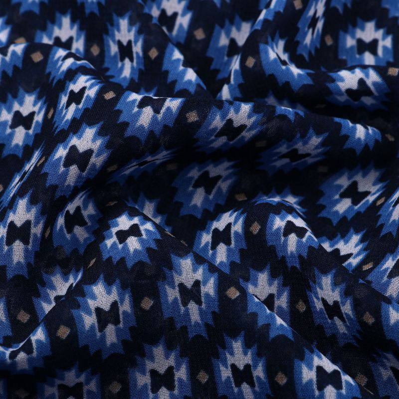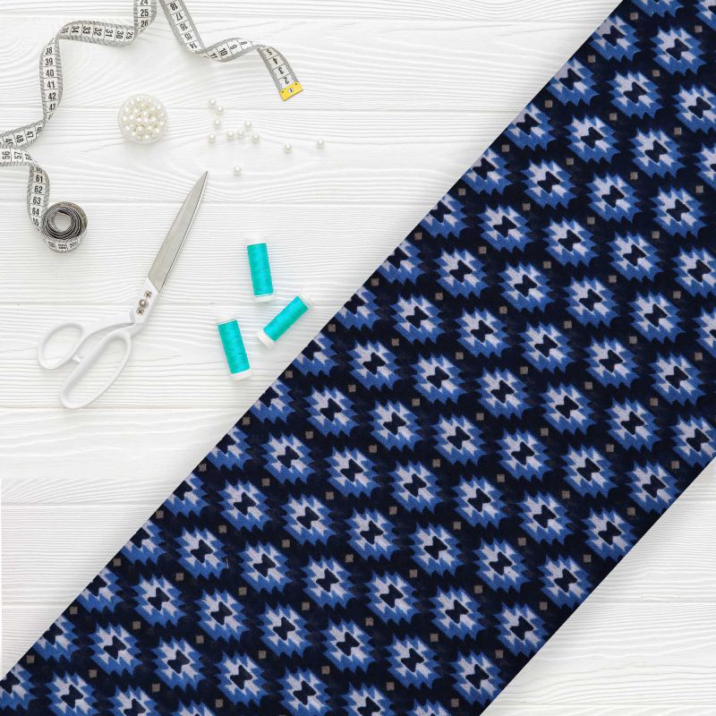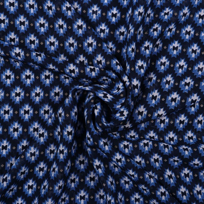 Navy Blue And White Geometric Pattern Screen Print Georgette Fabric
