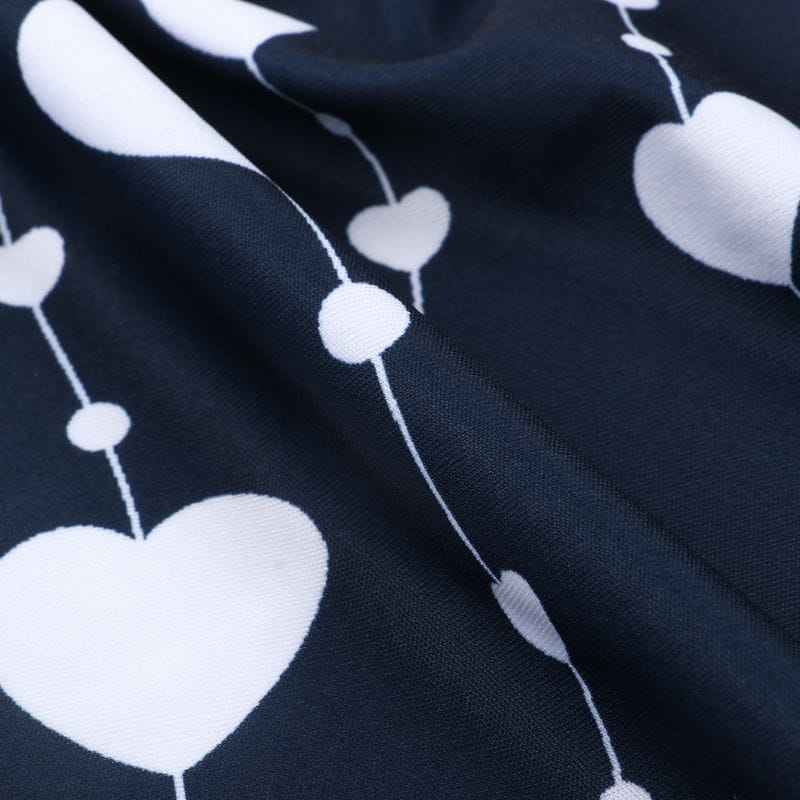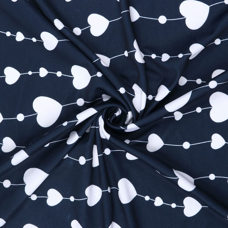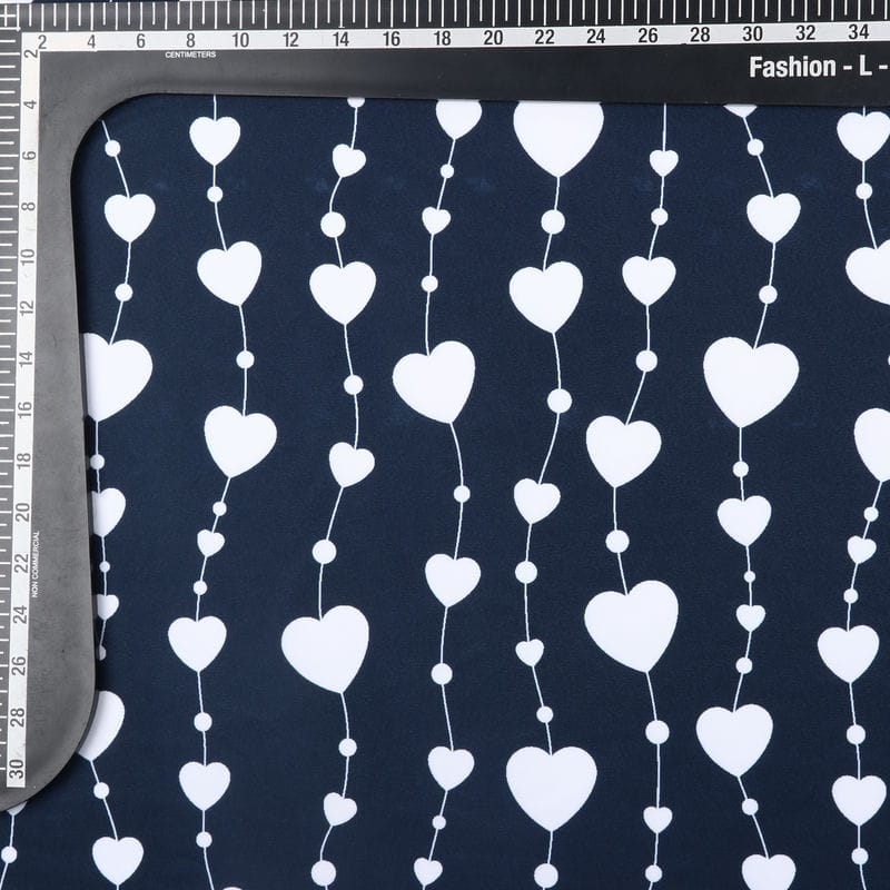 Navy Blue And White Heart Pattern Digital Print Lycra Fabric