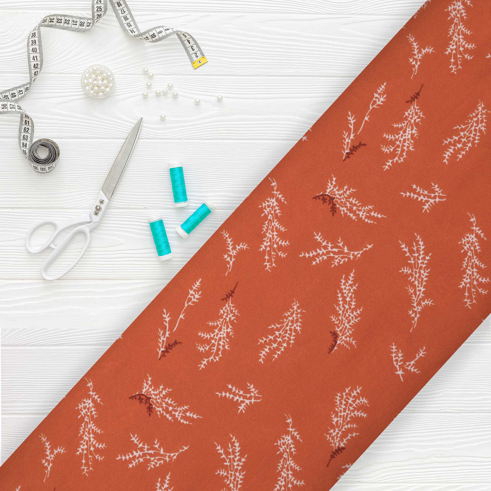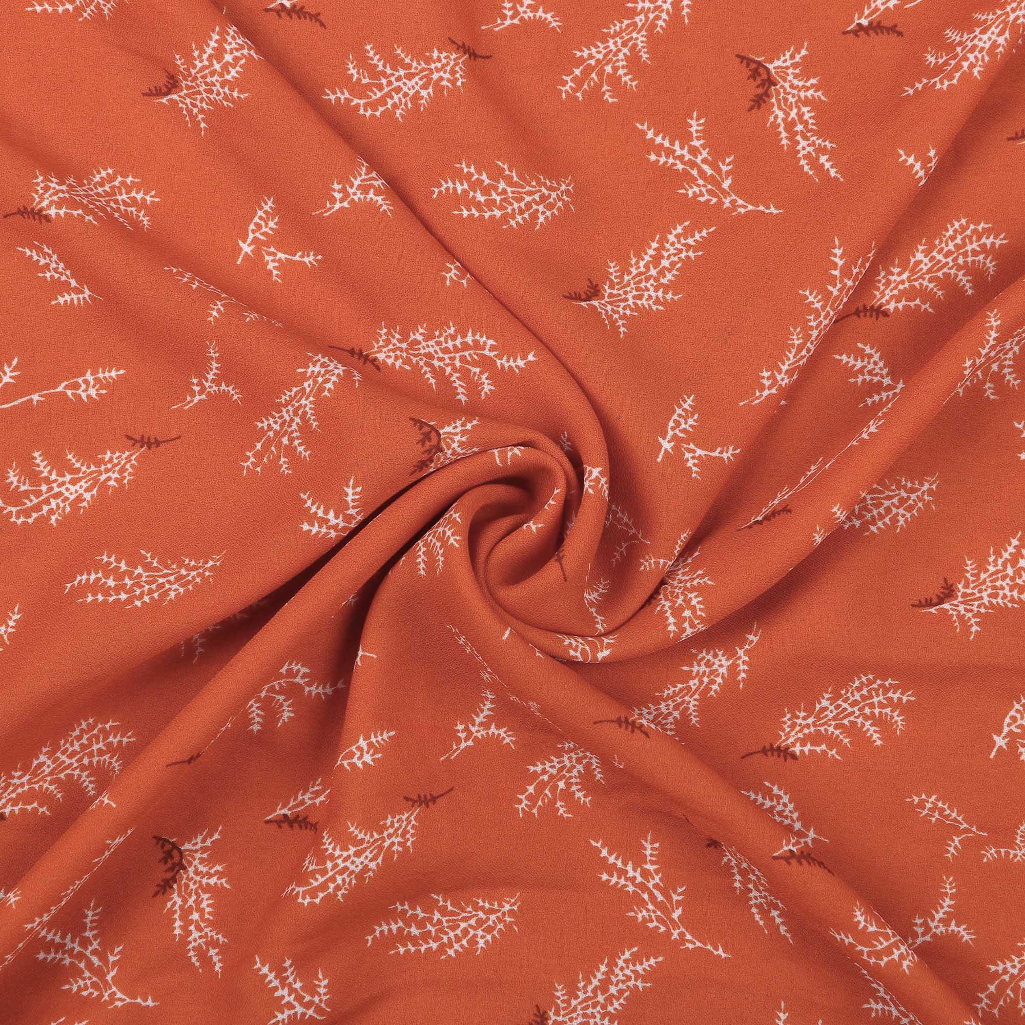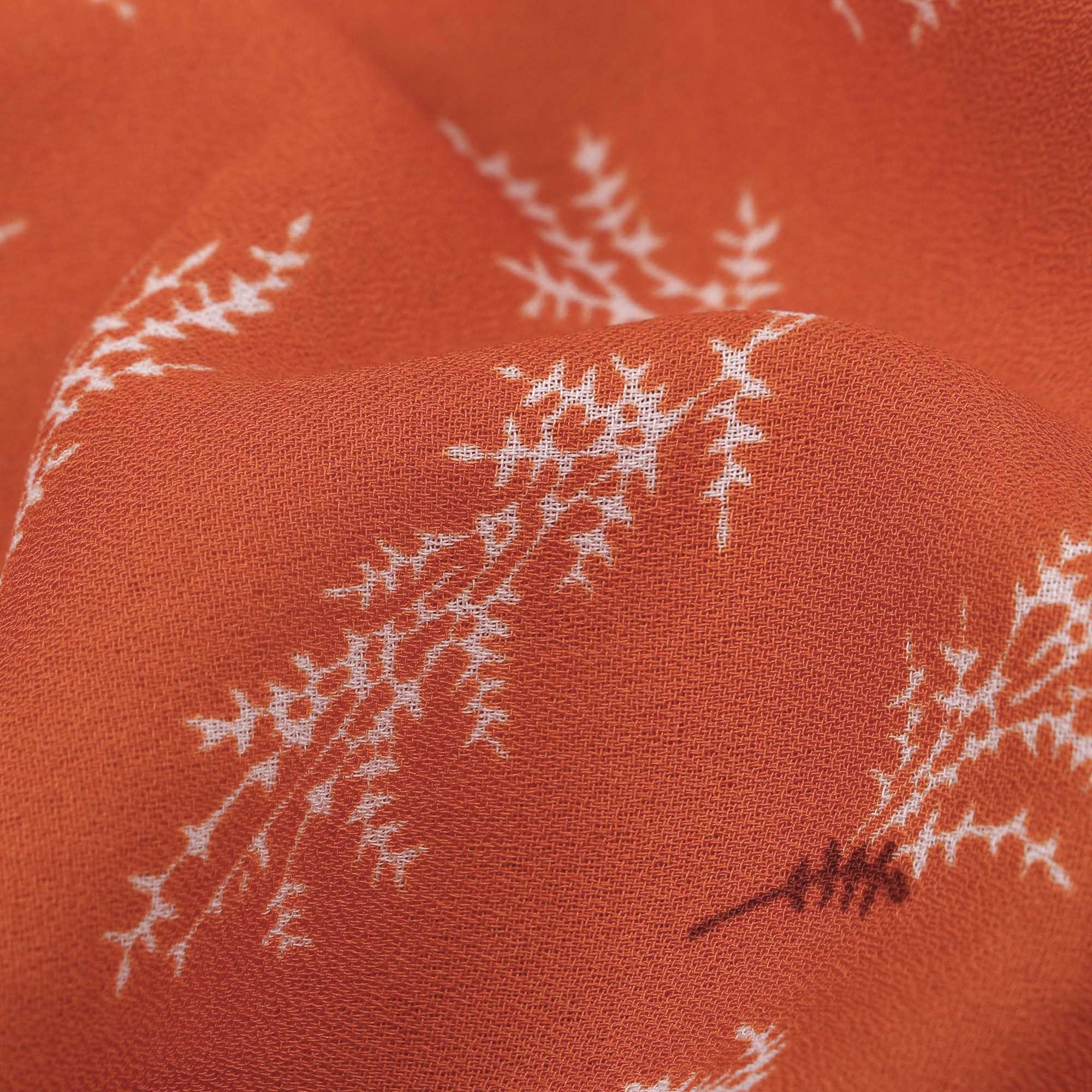 Ochre And White Floral Pattern Screen Print Moss Crepe Fabric