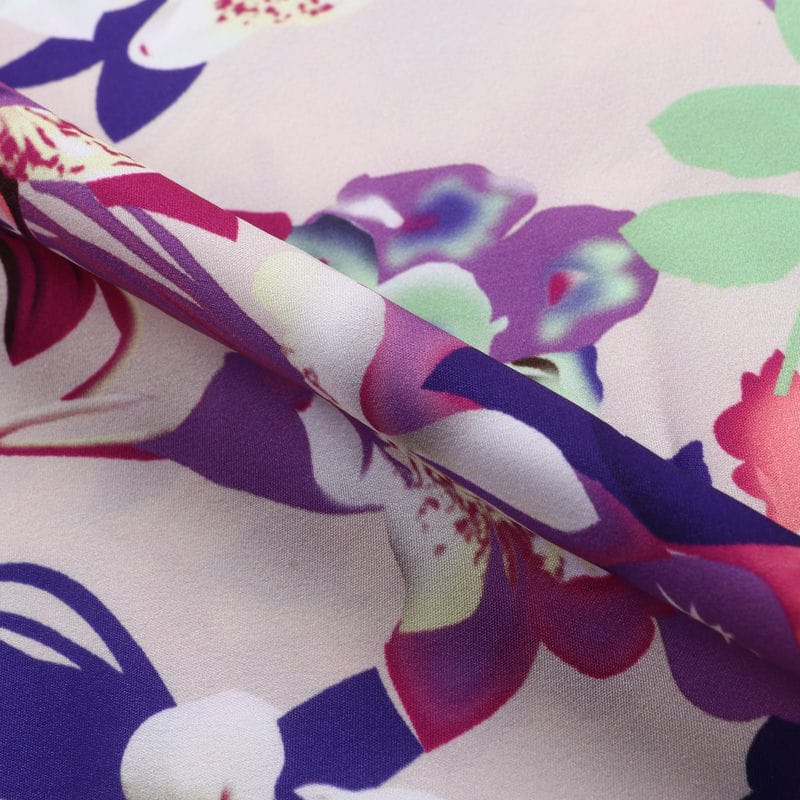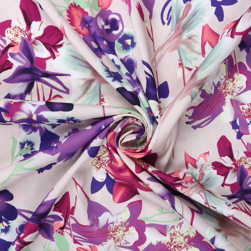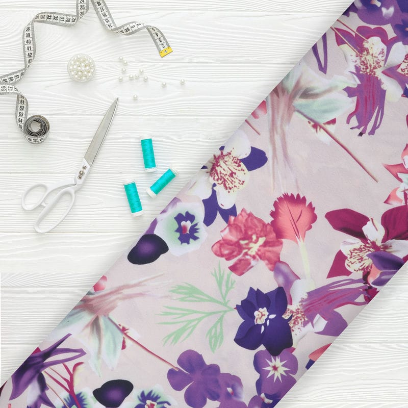 Off White And Purple Floral Pattern Digital Print American Crepe Fabric