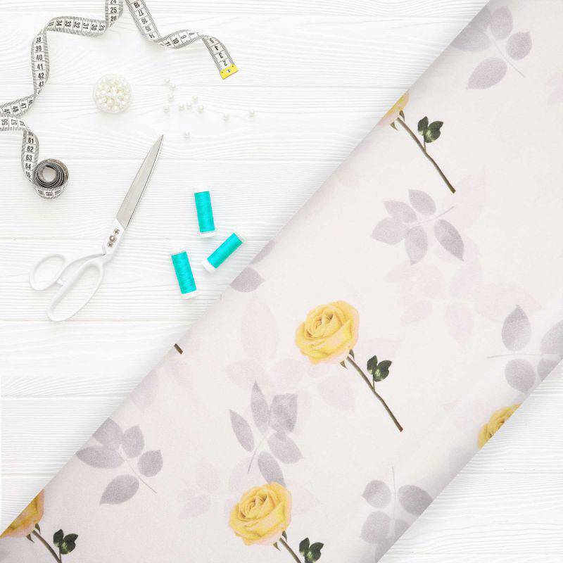 Off White And Yellow Floral Pattern Digital Print Japan Satin Fabric