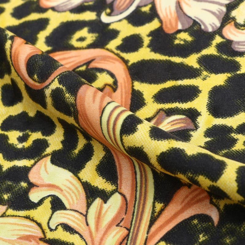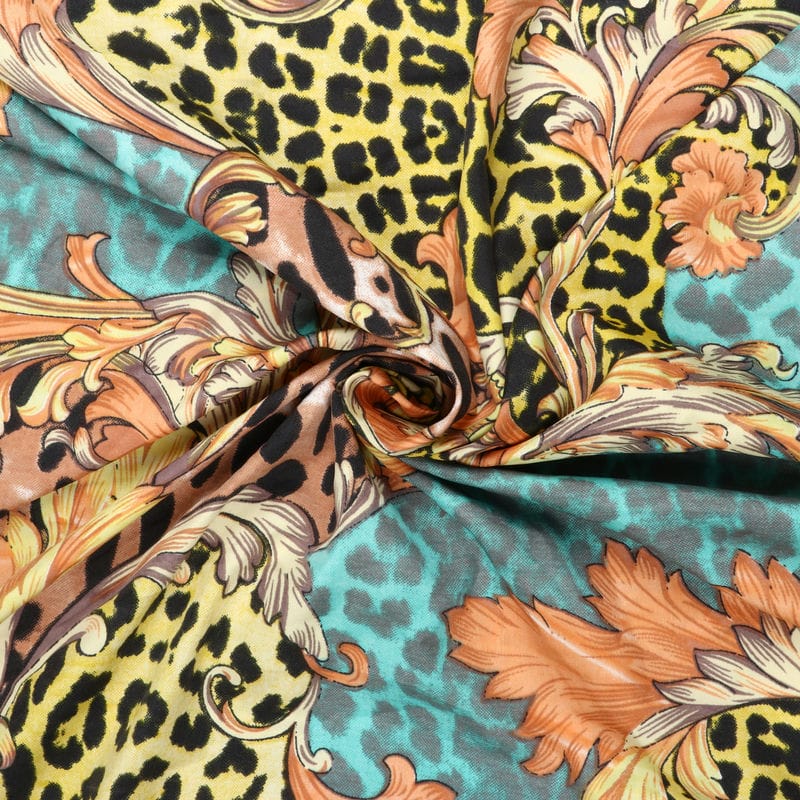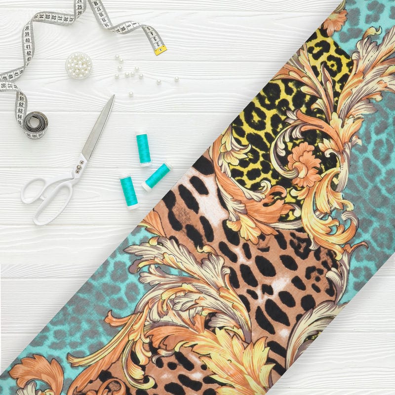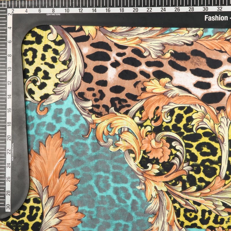 Orange And Turquoise Animal Pattern Screen Print Crepe Fabric