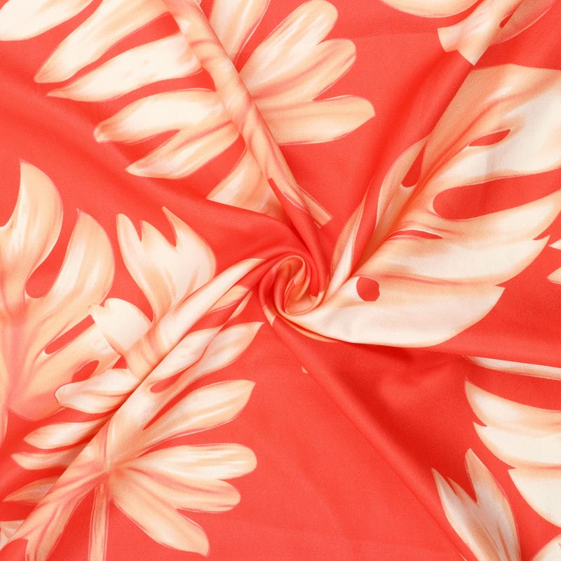 Orange And White Leaf Pattern Digital Print Rayon Fabric