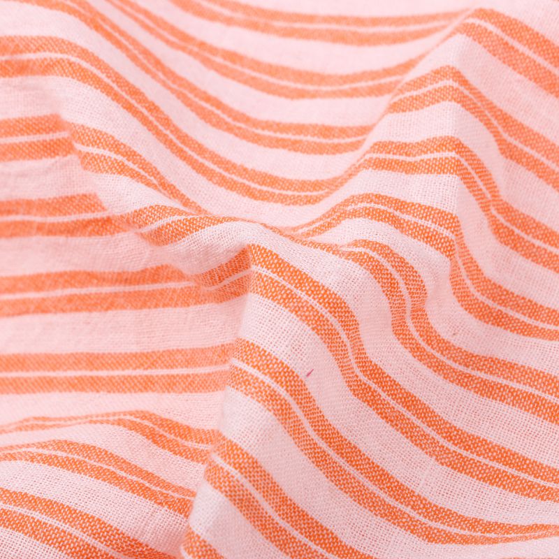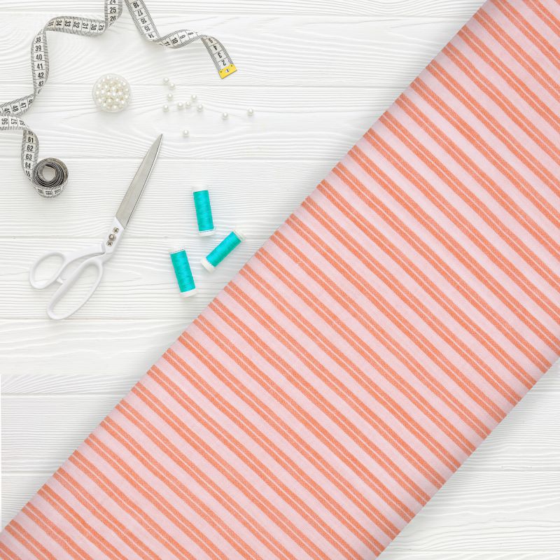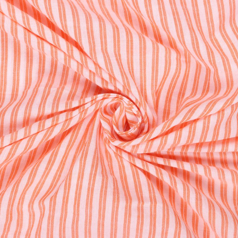 Orange And White Stripes Pattern Screen Print Cotton Fabric