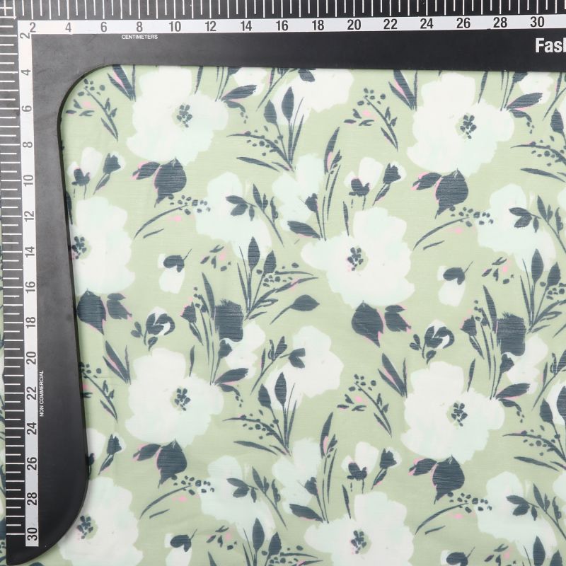 Pastel Green And White Floral Pattern Digital Print Chiffon Fabric