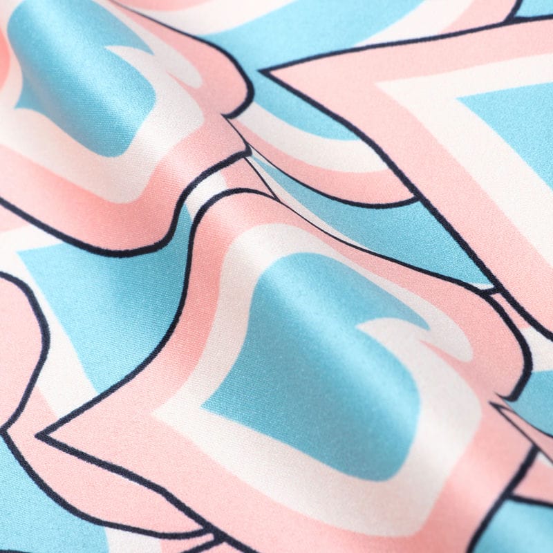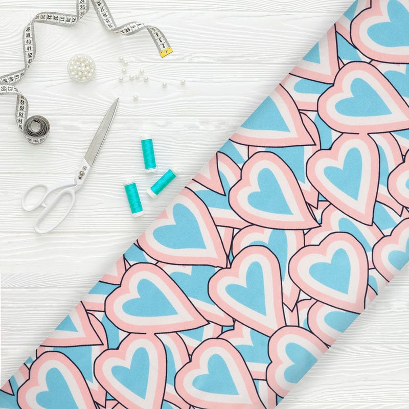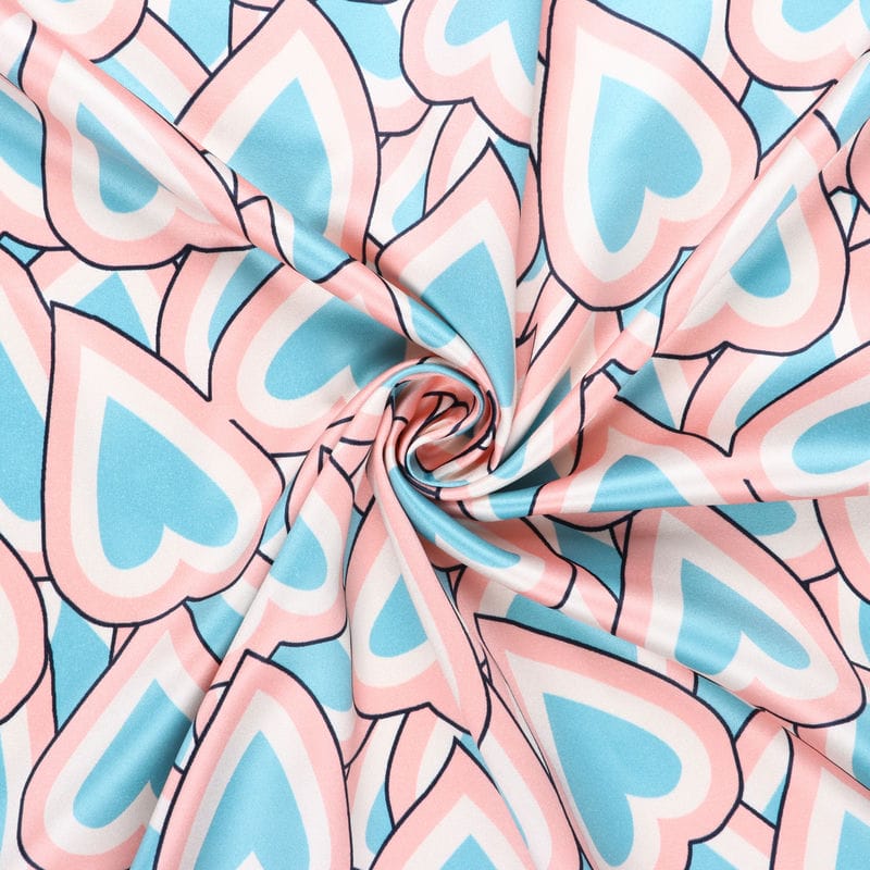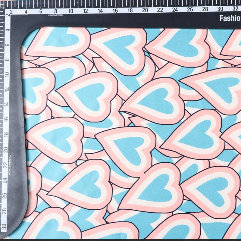Peach And Grey Heart Pattern Digital Print Silk Satin Fabric