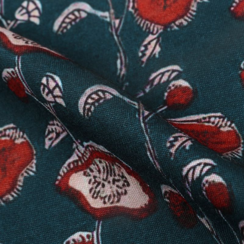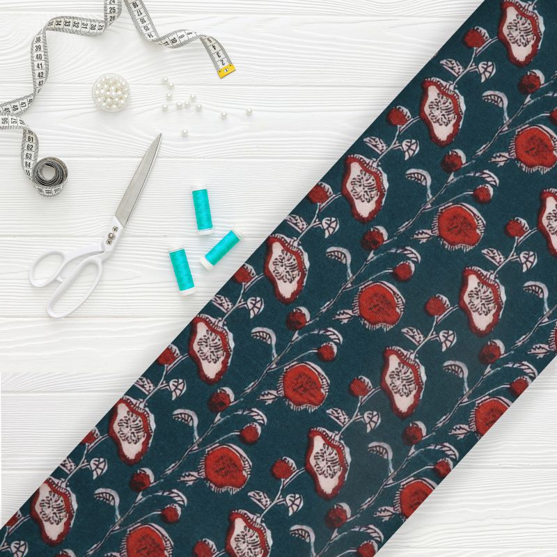 Top QualityPine Green And Dark Red Floral Pattern Digital Print Rayon Fabric