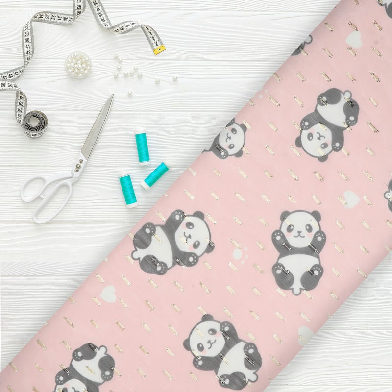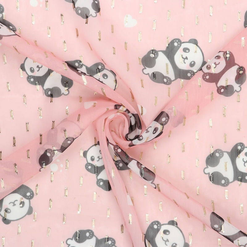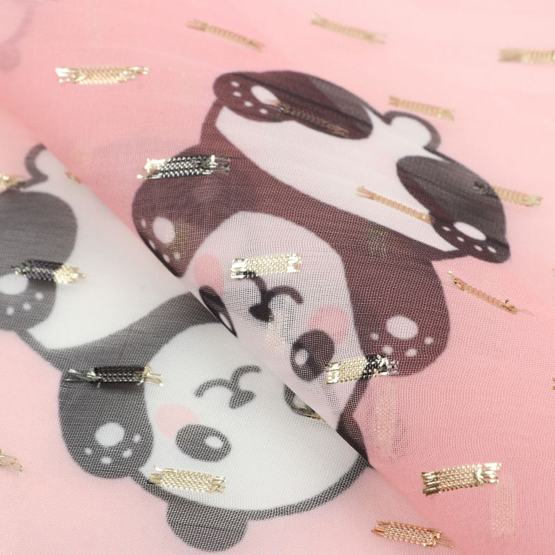 Pink And Black Kids Pattern Digital Print Chiffon Golden Dobby Fabric