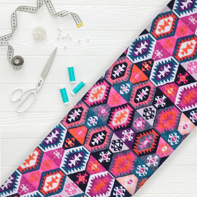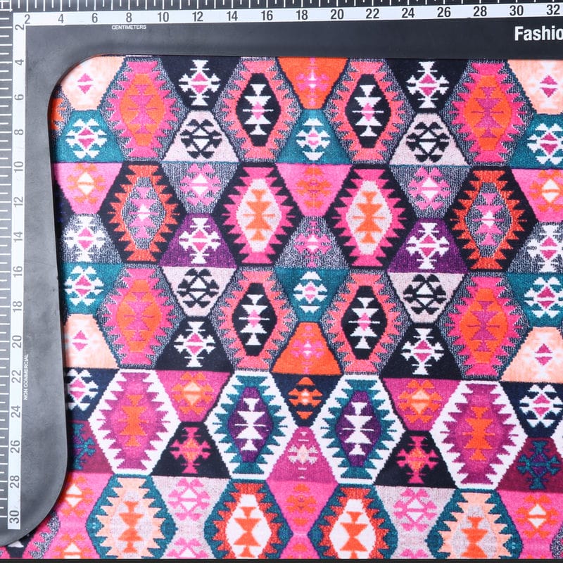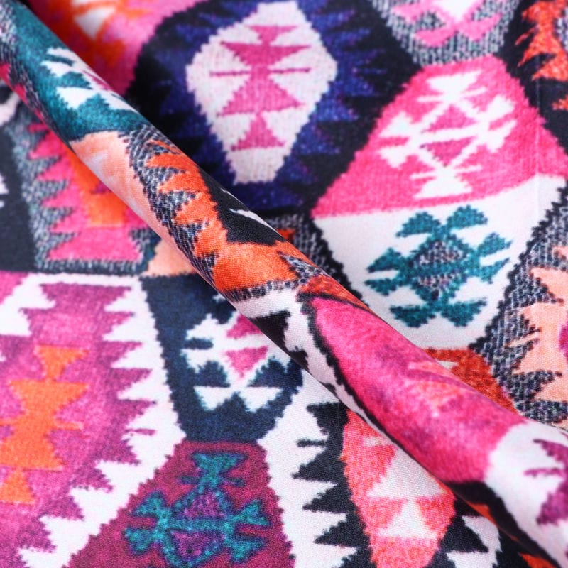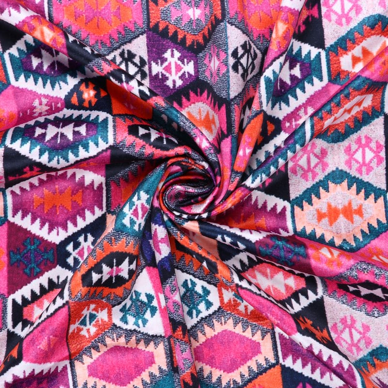 Pink And Black Traditional Pattern Digital Print Silk Satin Fabric