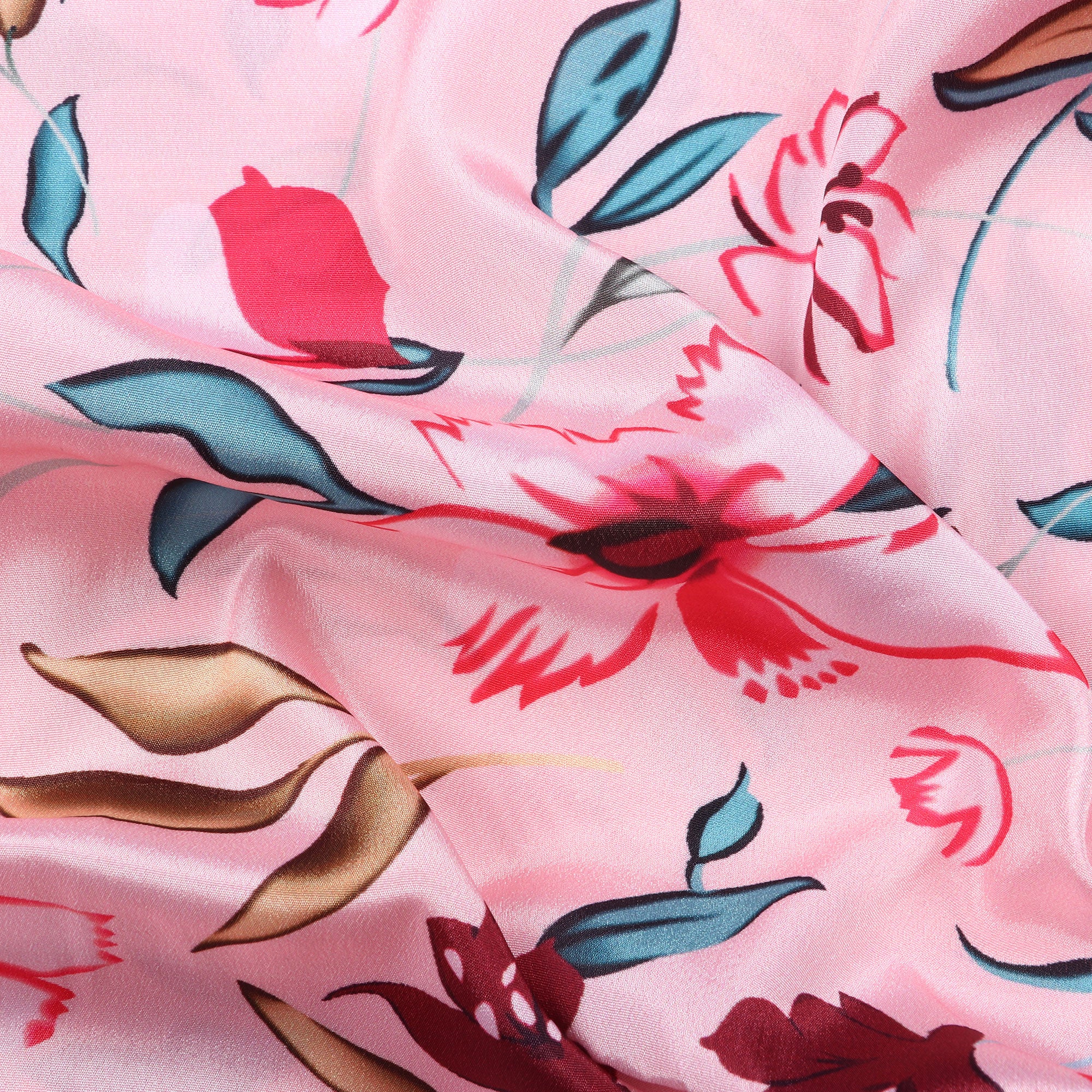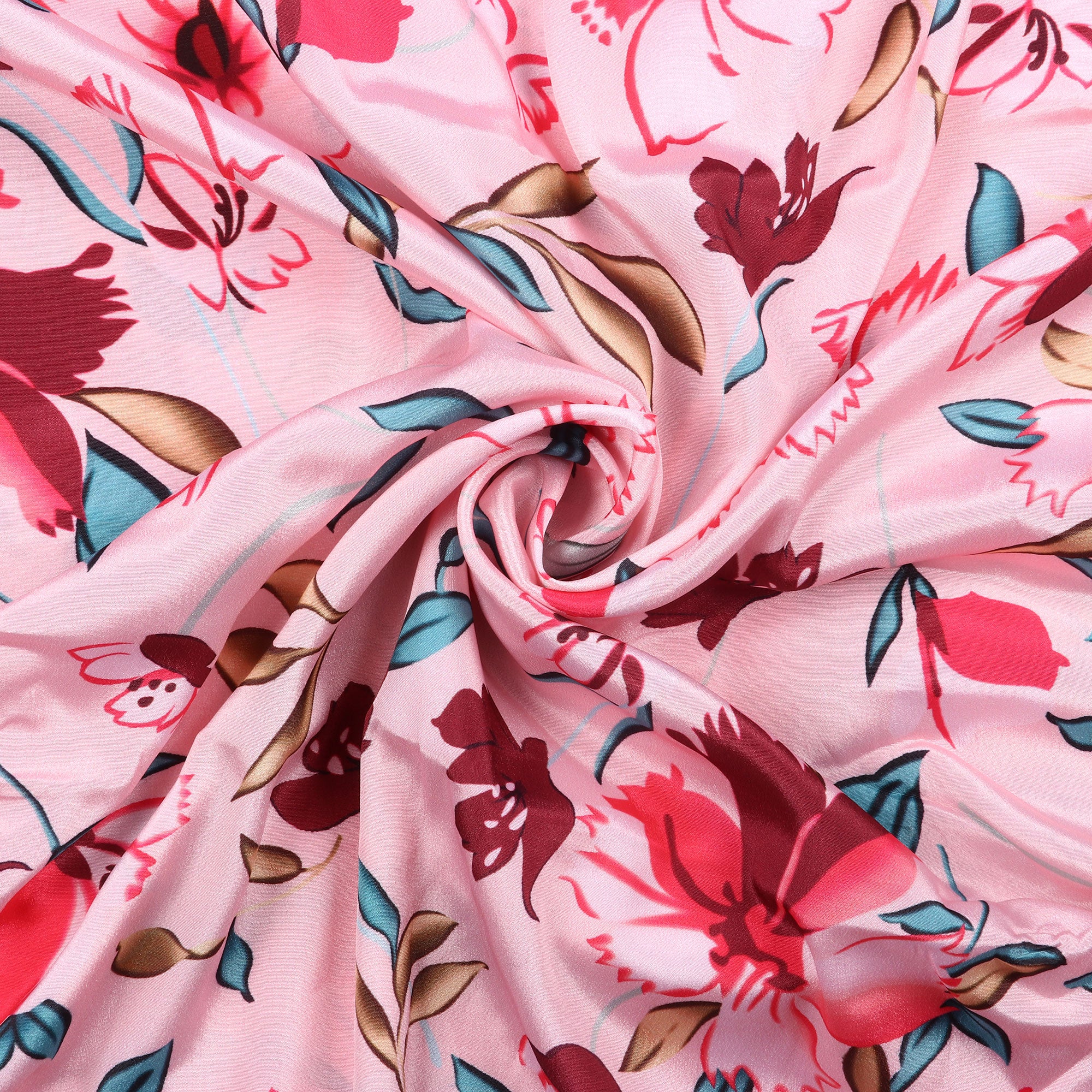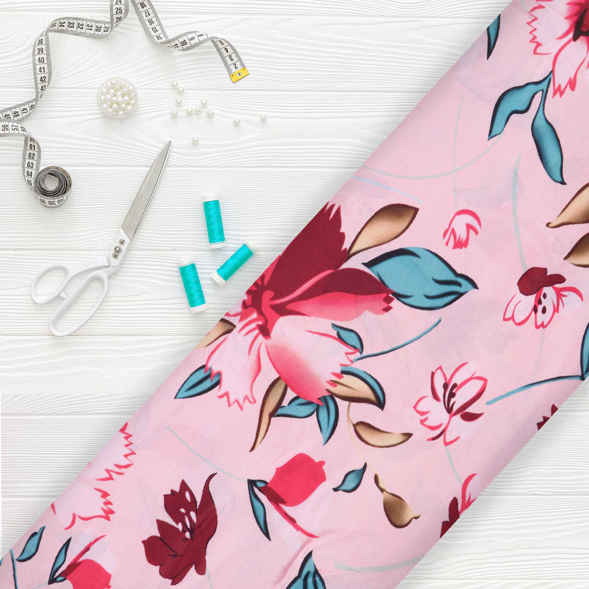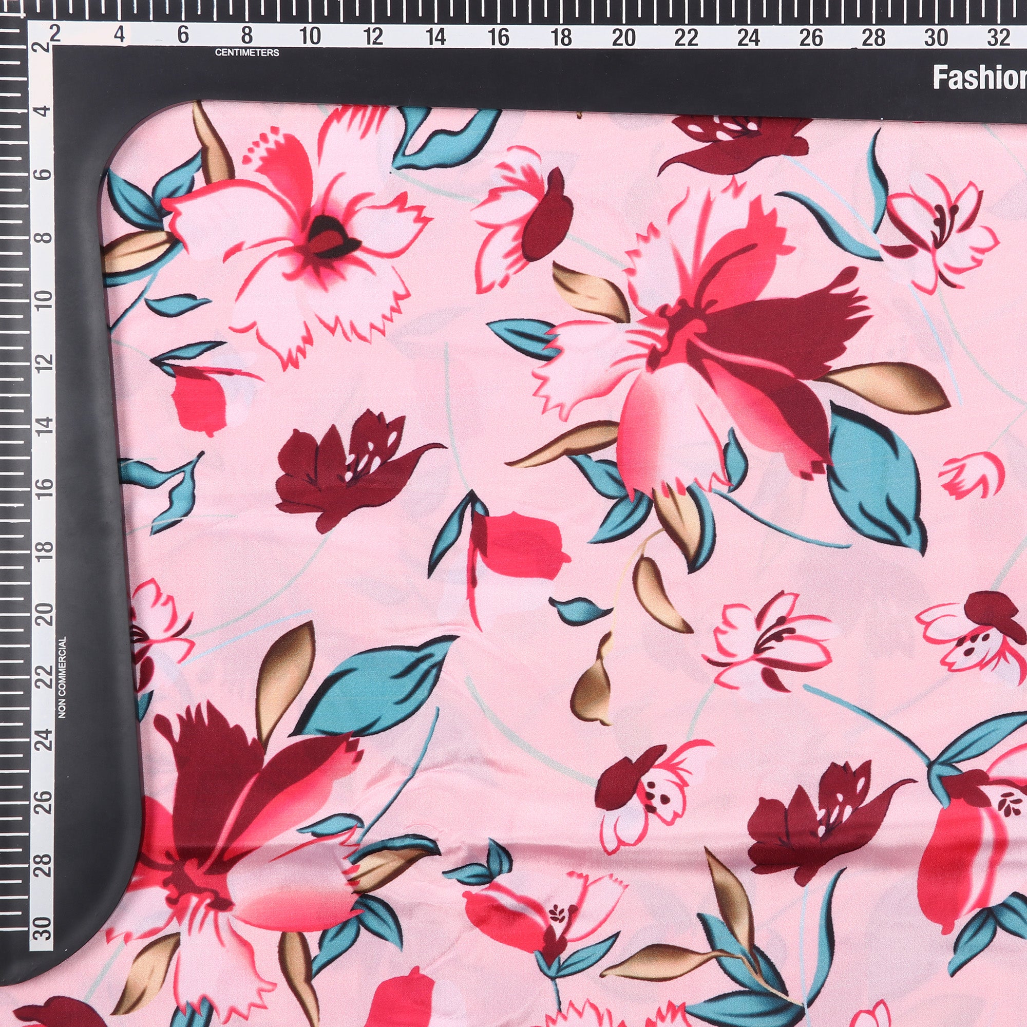 Pink And Brown Floral Pattern Digital Print Silk Crepe Fabric