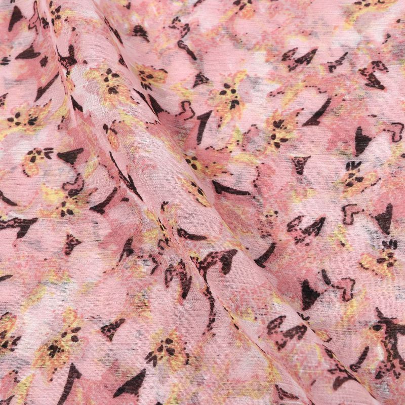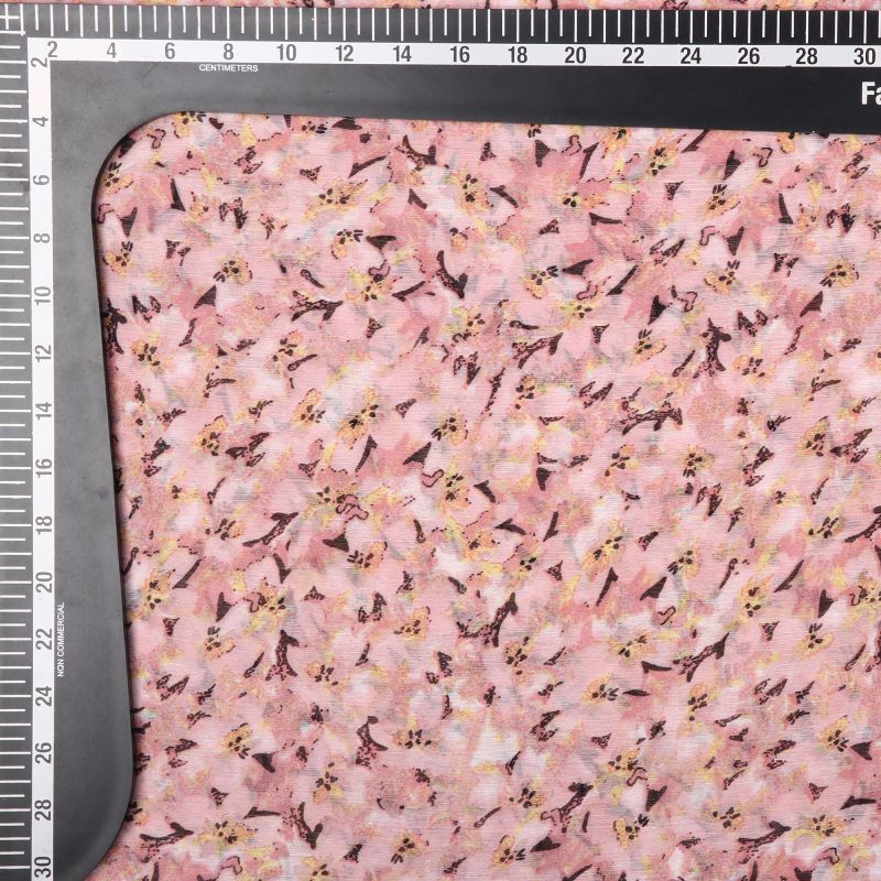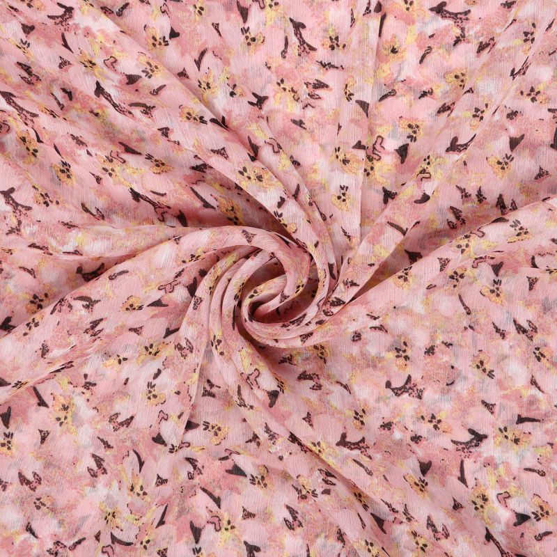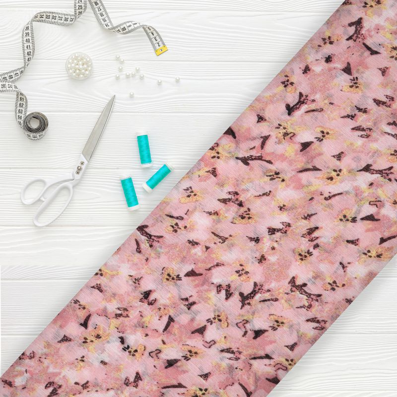 Pink And Brown Floral Pattern Screen Print Chiffon Fabric