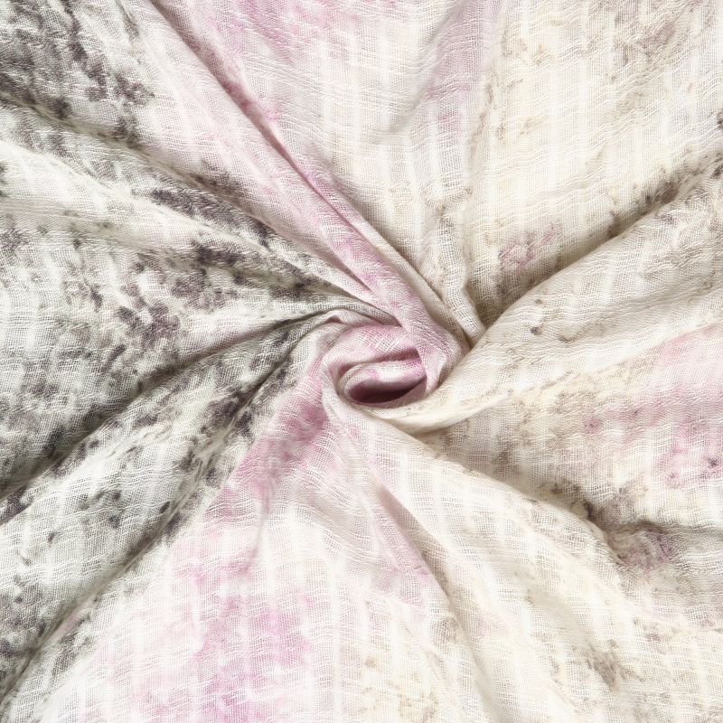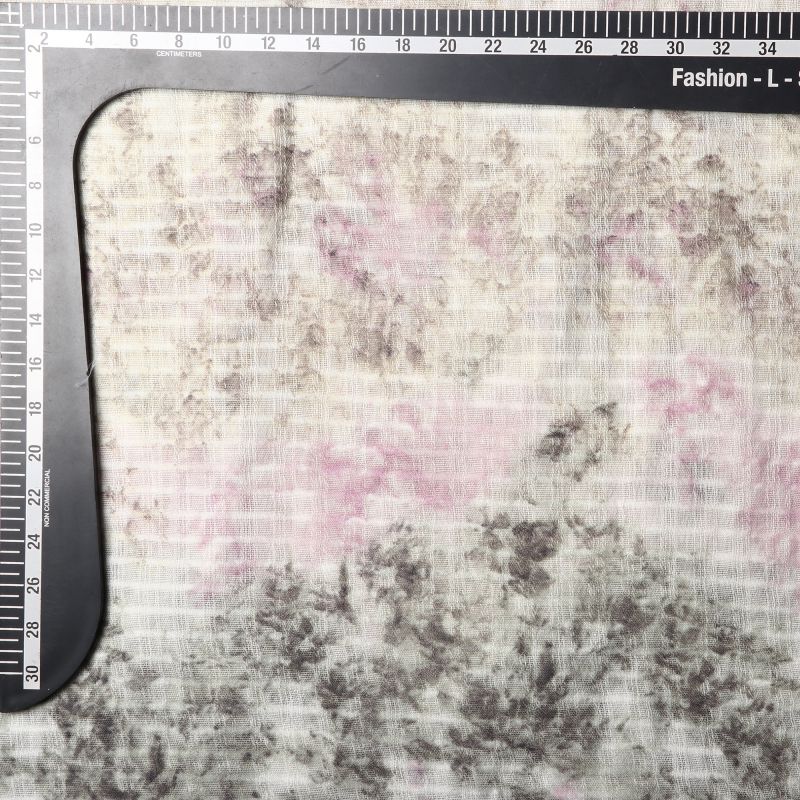 Pink And Dark Grey Tie & dye Pattern Screen Print Mul Dobby Fabric