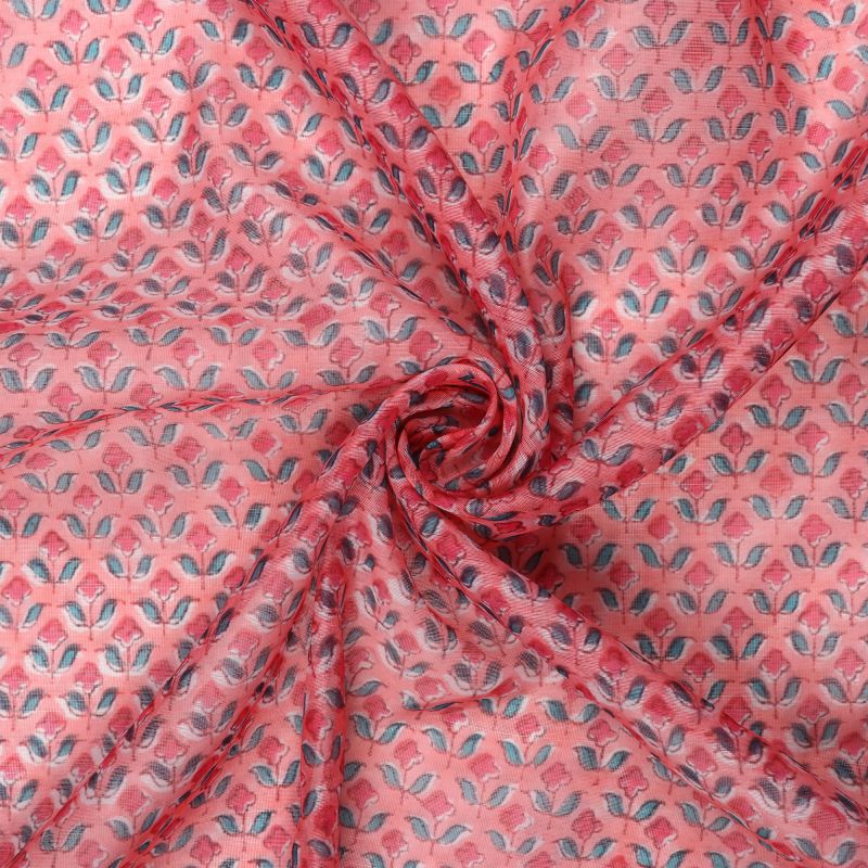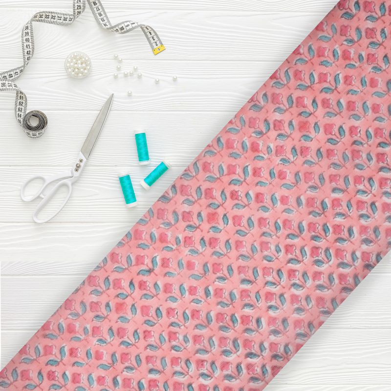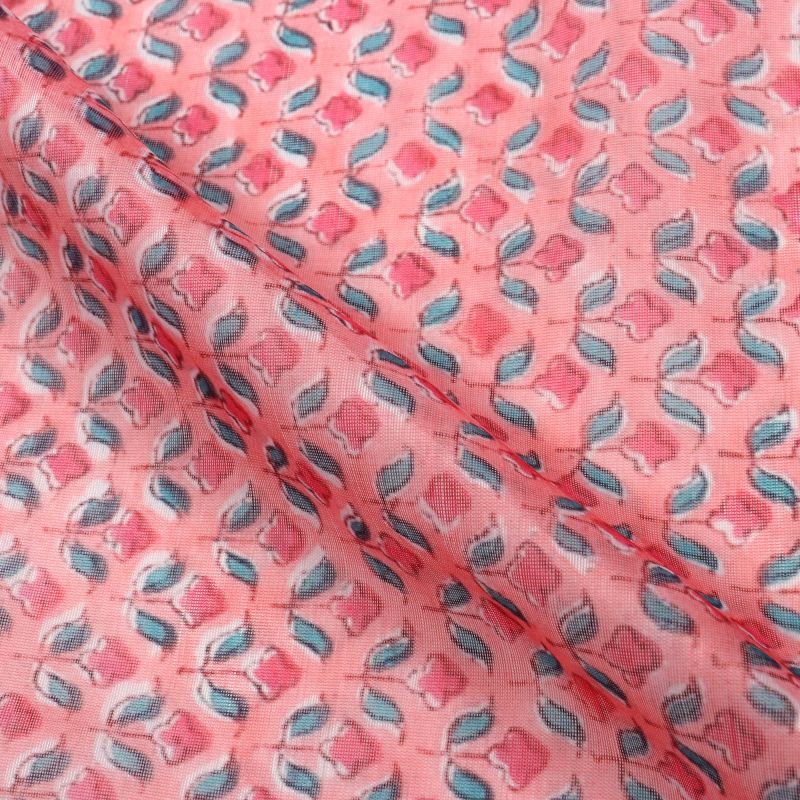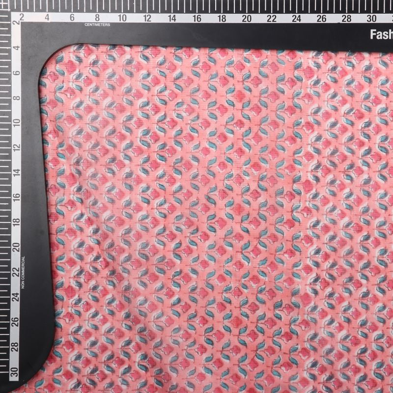 Pink And Red Floral Pattern Digital Print Chanderi Fabric