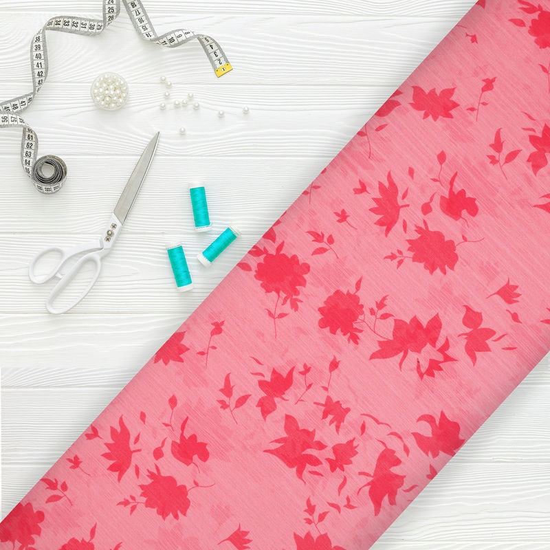 Pink And Red Floral Pattern Screen Print Chiffon Fabric