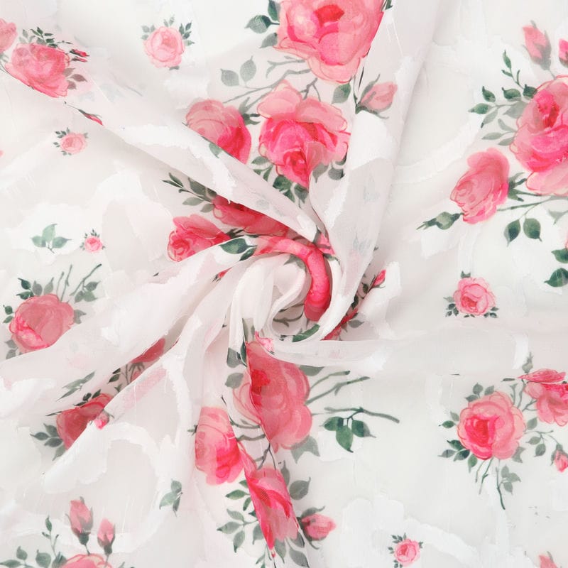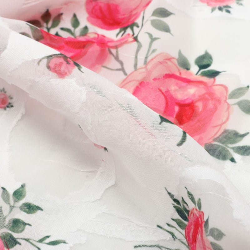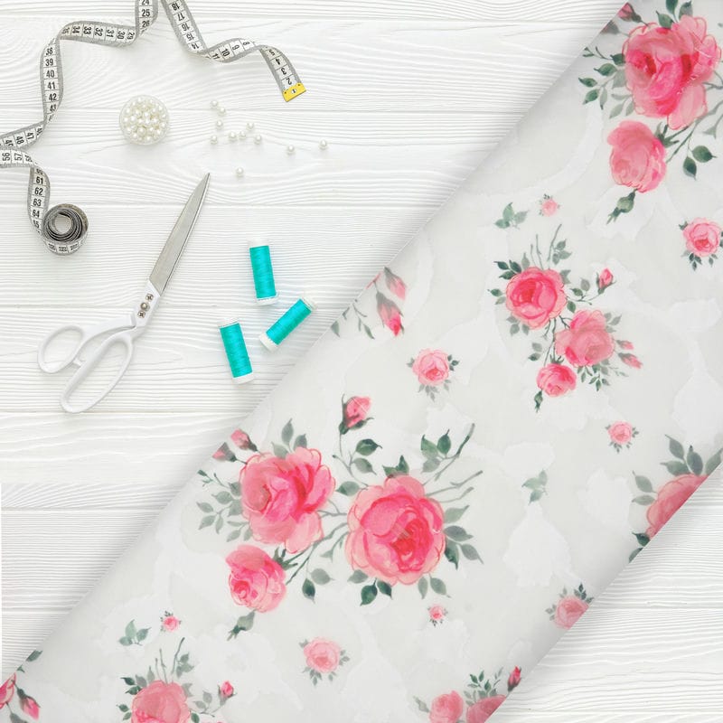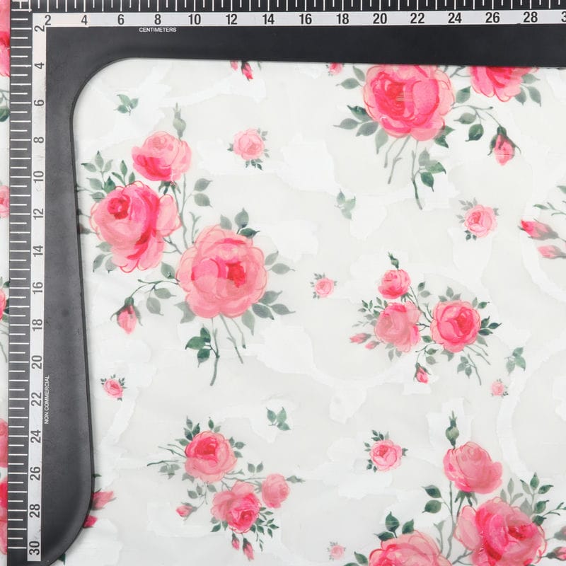 Pink And White Floral Pattern Digital Print Georgette Jacquard Fabric