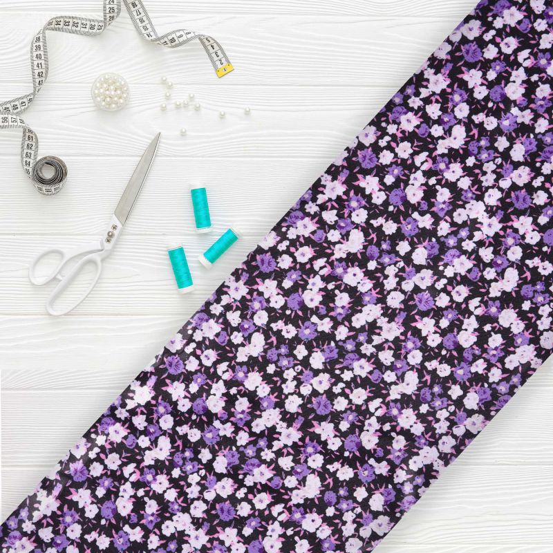 Purple And Baby Pink Calico Pattern Digital Print Ultra Satin Fabric