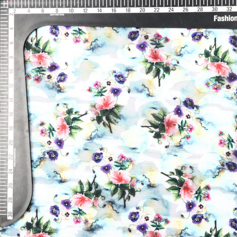 Purple And Color Floral Pattern Digital Print Jacquard Georgette Fabric