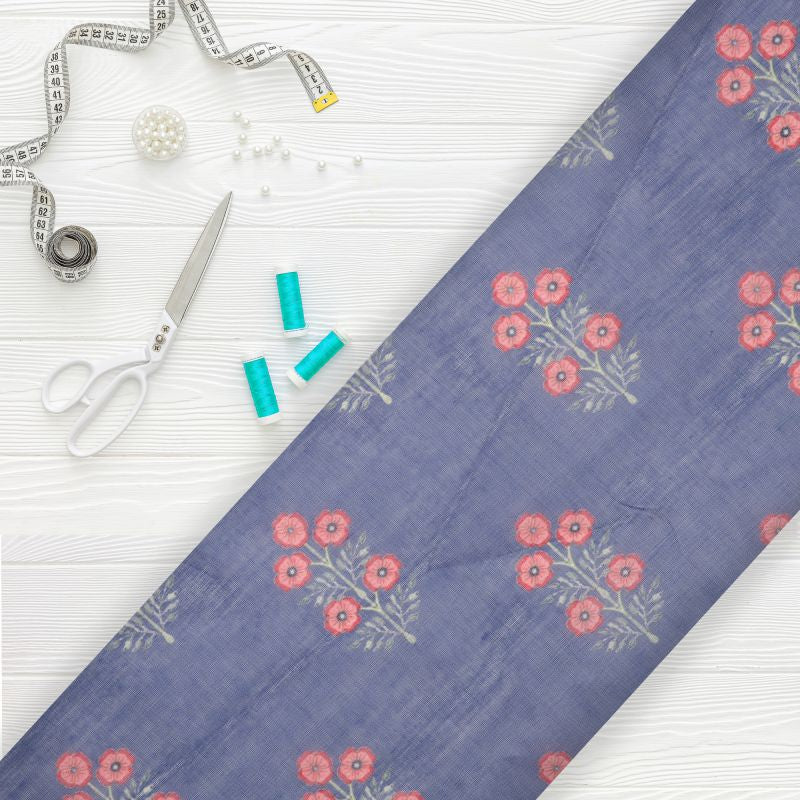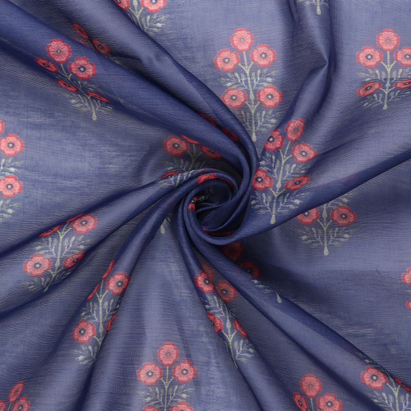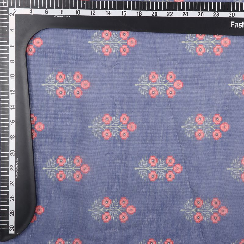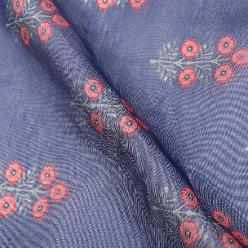 Purple And Salmon Red Floral Pattern Digital Print Chanderi Fabric