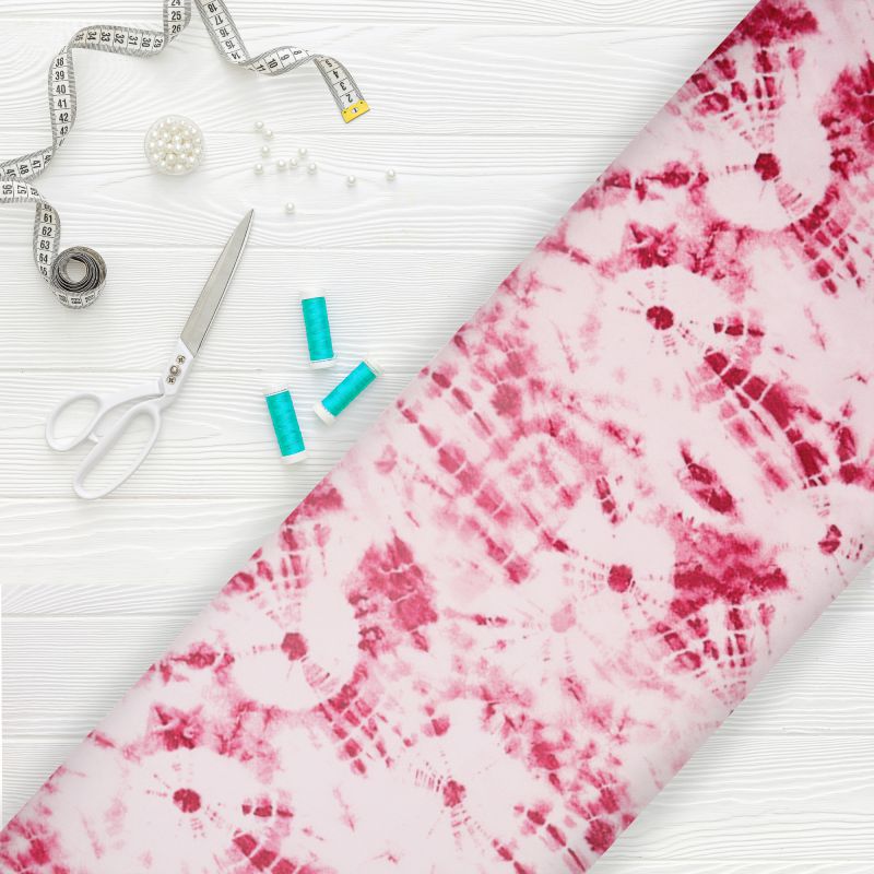 Raspberry And White Shibori Pattern Digital Print Liquid Organza Fabric