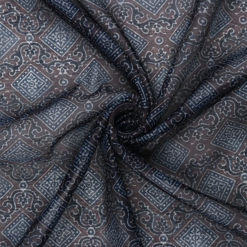 Red And Black Traditional Pattern Digital Print Chanderi Fabric