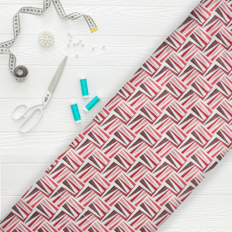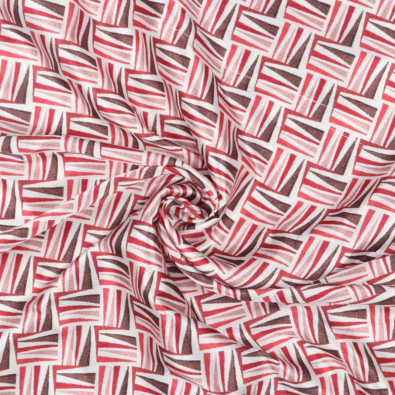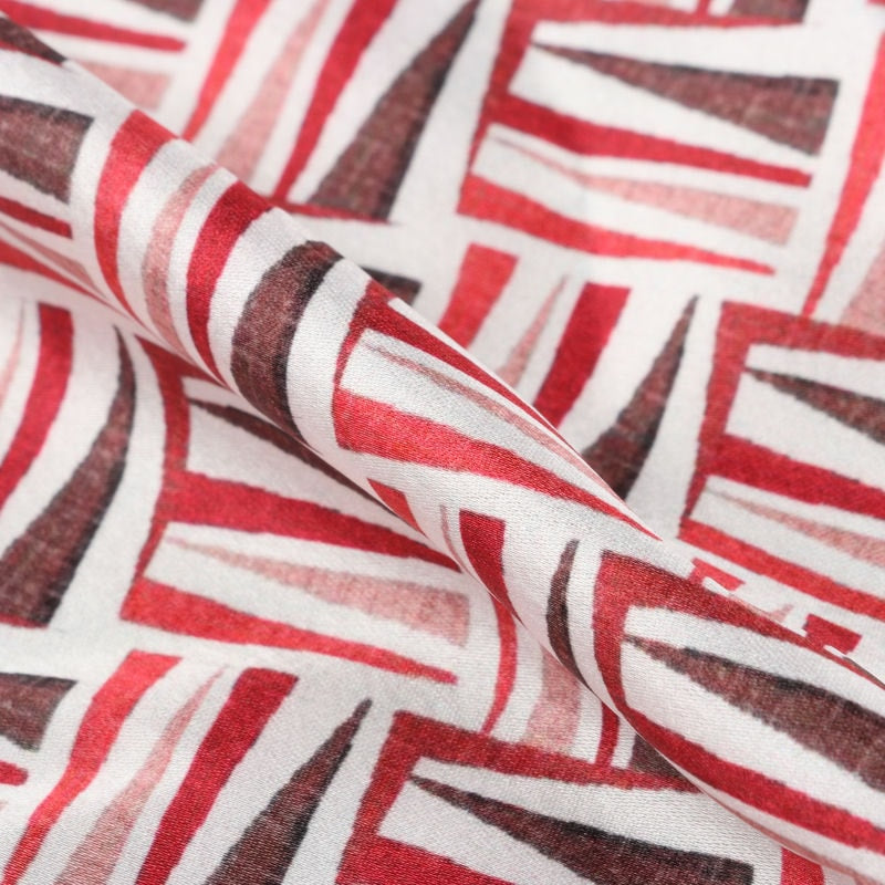 Red And White Abstract Pattern Digital Print Japan Satin Fabric