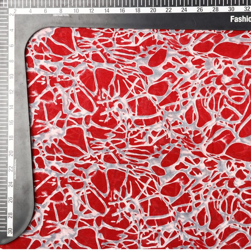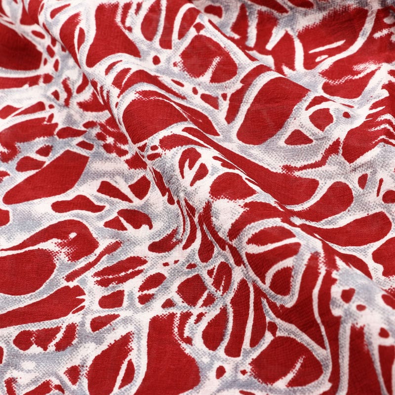 Red And White Abstract Pattern Screen Print Georgette Fabric