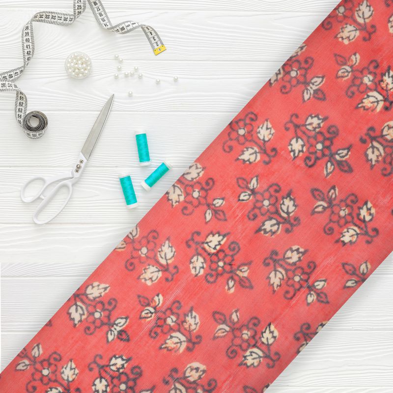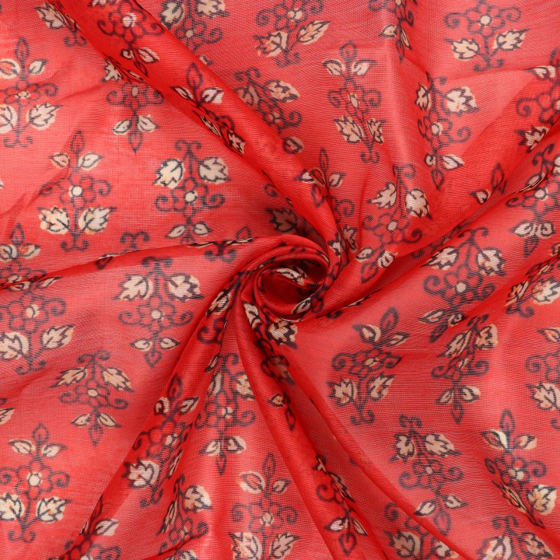 Red And White Floral Pattern Digital Print Chanderi Fabric