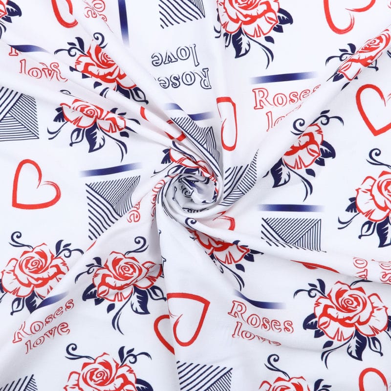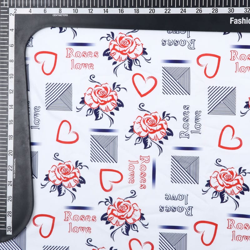 Red And White Floral Pattern Digital Print Crepe Fabric