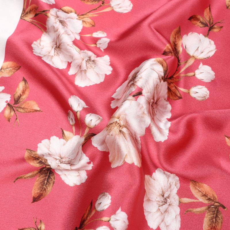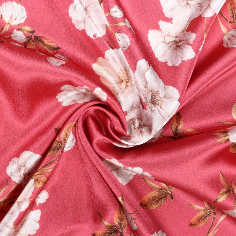 Red And White Floral Pattern Digital Print Japan Satin Fabric