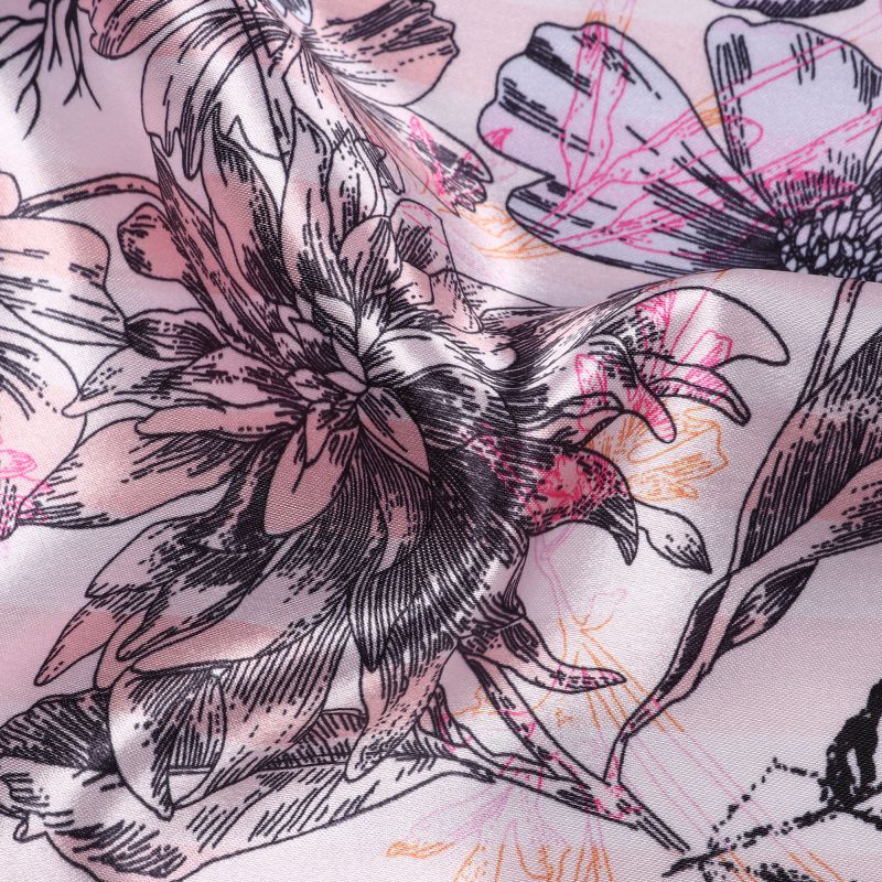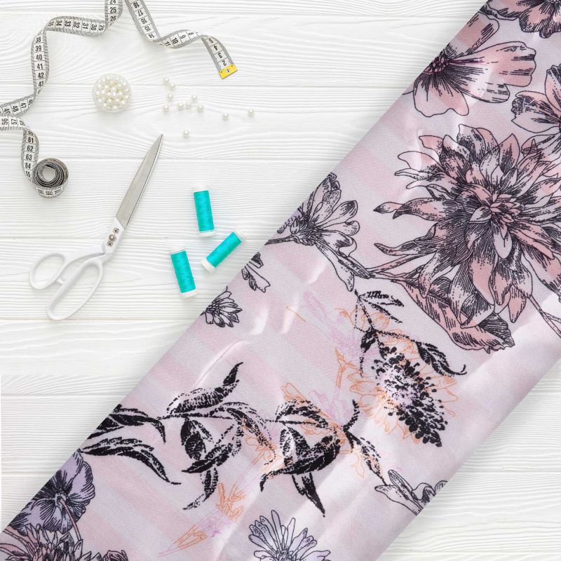 Rose Gold And Black Floral Pattern Digital Print Ultra Satin Fabric