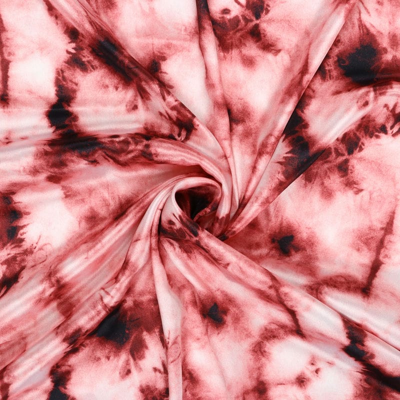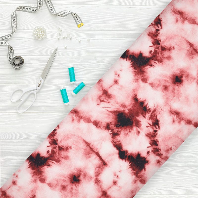Rouge Pink And Black Tie & Dye Pattern Digital Print Silk Crepe Fabric