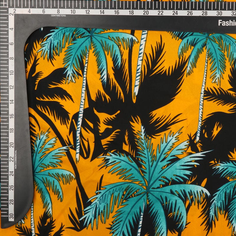 Royal Blue And Yellow Duck Pattern Digital Print Crepe Fabric (Bulk)